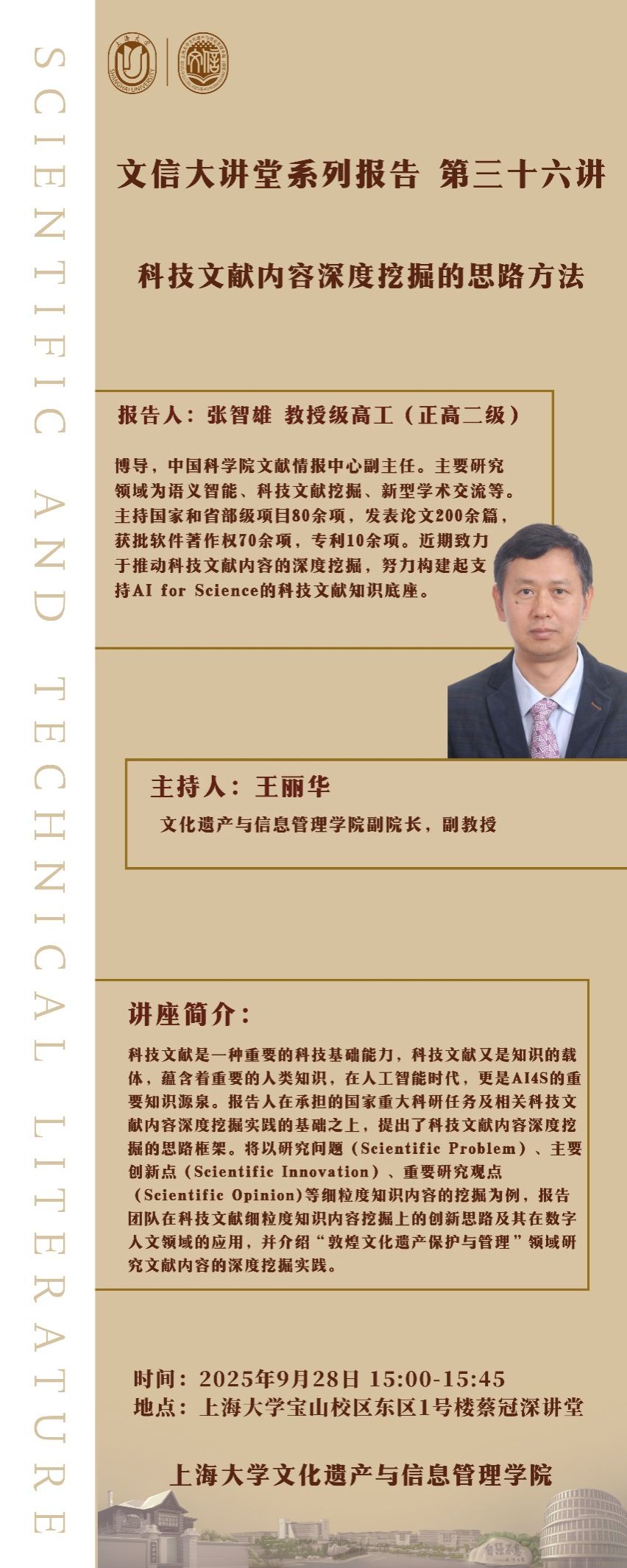 科技文献是一种重要的科技基础能力,科技文献又是知识的载体,蕴含着重要的人类知识,在人工智能时代,更是AI4S的重要知识源泉。本期活动特别邀请到中国科公司文献情报中心副主任张智雄教授,与我们共同探讨“科技文献内容深度挖掘的思路方法”。本次分享聚焦在科技文献细粒度知识内容挖掘上的创新思路及其在数字人文领域的应用,并介绍“敦煌文化遗产保护与管理”领域研究文献内容的深度挖掘实践。