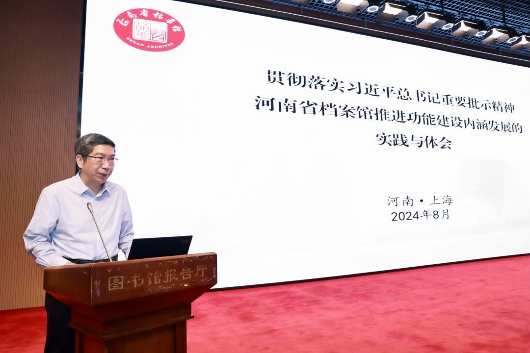 由国防大学政治公司薛匡勇教授主持,河南省档案馆李修建馆长作题为“贯彻落实习近平总书记重要批示精神,推进河南省档案馆功能建设内涵发展的实践与体会”的主旨报告。李修建馆长强调了习近平总书记批示对档案工作的重要意义,即不仅提升了档案工作的地位,还明确了新时代档案工作的目标任务。随后详细介绍了河南省档案馆在功能建设、服务大局、助力脱贫攻坚、疫情防控、生态保护及高质量发展等方面的具体举措与成效,通过开发红色档案、强化科技支撑、树立底线思维等措施推动档案馆创新发展。