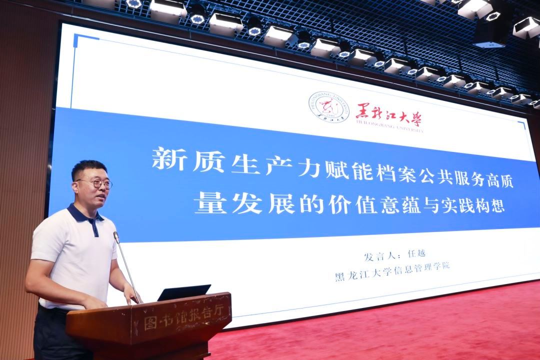 由郑州大学信息管理公司副经理孙大东副教授主持,黑龙江大学信息管理公司副经理任越教授作题为“新质生产力赋能档案公共服务高质量发展的实践构想”的主旨报告。任越教授认为在当前科技革命和数字化浪潮下,档案公共服务转向高质量发展的过程中,需要将更多目光转向以数字技术为代表的新质生产力,以数字新质生产力赋能档案公共服务高质量发展,进而推进我国档案事业整体的现代化进程。在阐释新质生产力赋能档案公共服务高质量发展的价值意蕴基础上,提出创新成为第一动力、协调成为内生特点、开放成为必由之路、共享成为根本目的的实践路径。