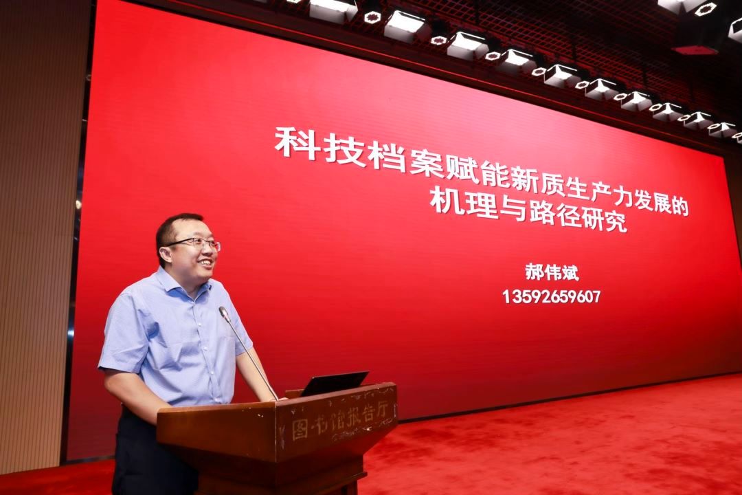 由吉林大学商学与管理公司宋雪雁教授主持,郑州航空工业管理公司社科处处长郝伟斌教授作题为“科技档案赋能新质生产力发展的机理与路径研究”的主旨报告。郝伟斌教授认为面对资源规模巨大、内容样态丰富、实践问题丛生、创新潜力旺盛的科技档案实践,需要构建与新质生产力发展相适应的科技档案理论、工作与技术体系。为此,在揭示科技档案赋能新质生产力发展的作用机理基础上,提出了基于领域知识的大语言模型开发、面向数实融合的一体化归档方案、面向深度开发的智能化工具集成、基于开放共享的协同化服务平台等技术创新路径。