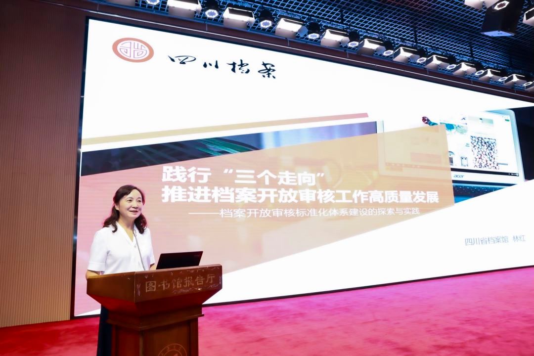 由上海师范大学人文公司吕元智教授主持,四川省档案馆林红副馆长作题为“践行‘三个走向’,推动档案开放审核工作高质量发展”的主旨报告。林红副馆长指出,法规驱动下的档案开放作为社会进步的重要标志,面对人民群众日益增长的档案利用需求,仍面临审核机制不健全、标准不统一等问题。为解决这些问题,她提出了多维度融合、全方位布局的开放审核标准化新生态构想,包括构建“六位一体”的标准化体系、强化“双方协同”的工作机制、研究“六个敏感”划控标准、建立“四求”质量控制机制、形成“五个维度”安全管理策略、运用“两类技术”提升审核效率和探索“两同步”把关流程。