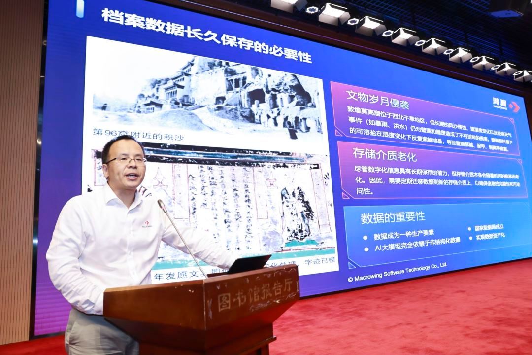 由北京联合大学应用文理公司谢永宪教授主持,鸿翼联合创始人兼CTO罗永秀作题为“AI多模态技术下的名人档案开发利用与长期保存的探索与研究”的主旨报告。罗永秀首先指出了档案数据长久保存的必要性,然后指出了生成式AI在名人档案开发利用中的应用场景,以及数字胶片应用于档案长期保存的优势,最后提出随着AI技术的不断革新,通过深度学习、自然语言处理等,能够实现档案内容的自动分类、摘要生成与智能检索,将极大提升档案利用效率与价值,为名人文化传承与研究提供强有力支持。