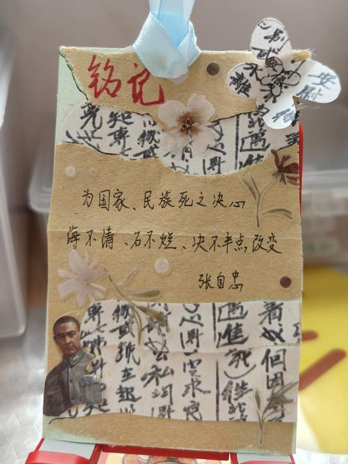 书签右上角的蝴蝶代表向死而生的精神升华。蝴蝶象征生命短暂却绚烂,烈火灼伤的描绘暗喻张自忠将军在枣宜会战中明知必死仍毅然赴战的抉择。这种“在毁灭中绽放”的姿态,恰如庄子笔下“薪尽火传”的哲学隐喻——生命虽会消逝,但精神火种永不熄灭。