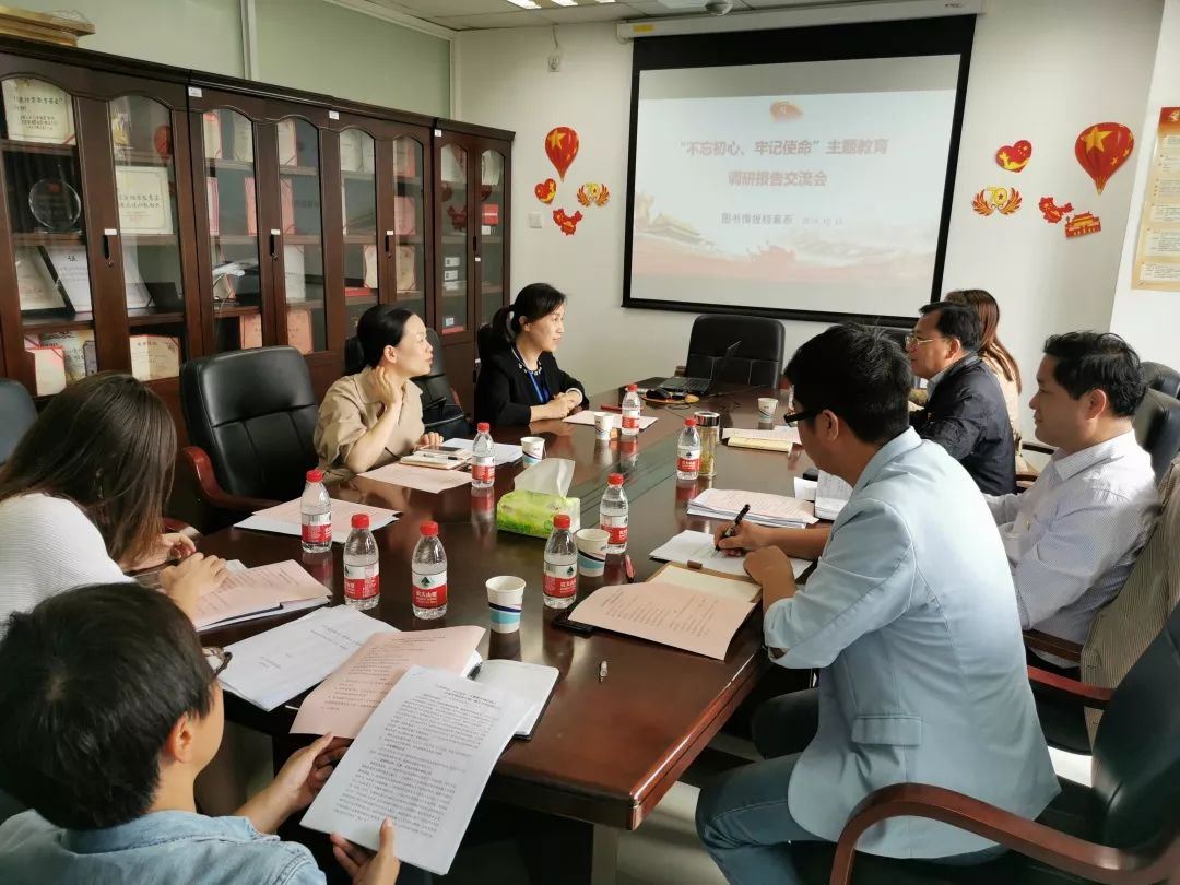 10月15日下午1:30,图情档系领导班子成员在东区1号楼449A召开“不忘初心,牢记使命”专题教育调研报告交流会,全面梳理总结前一阶段开展调研研究的工作情况。