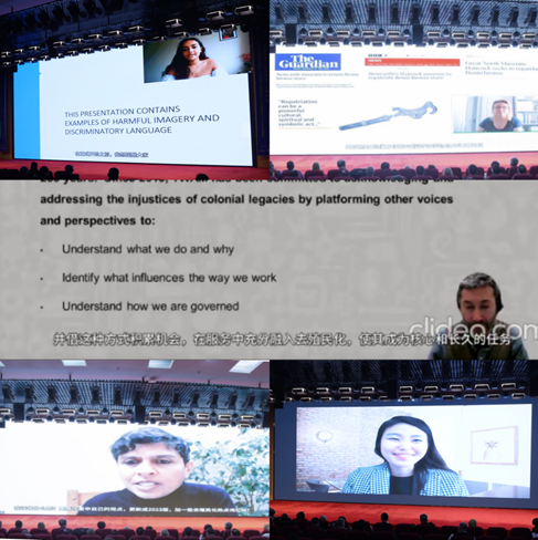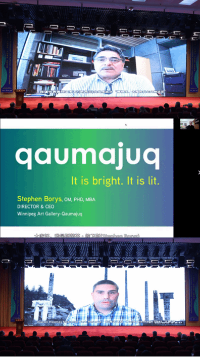 在随后“博物馆再思”的专题分享上,由国际博物馆协会秘书处博物馆与社会部门负责人凯瑟琳·特维(Katharine Turvey)担任主持。新西兰蒂帕帕国家博物馆毛利共同领导者阿若帕塔·哈克瓦(Arapata Hakiwai)分享了新西兰正在进行的博物馆去殖民化实践,并对未来的博物馆发展做出了展望;加拿大温尼伯美术馆馆长与CEO 斯蒂芬·鲍卫斯(Stephen Borys)以Qaumajuq博物馆的建设为例讲述了加拿大南部博物馆对于因纽特文化展示的新模式;加拿大海达瓜伊博物馆的肖恩·杨(Sean Young)讲述了其所在博物馆的去殖民化实践。