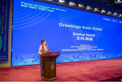 国际博物馆协会主席艾玛·纳迪(Emma Nardi)发表致辞并表示,去殖民化是一个关乎历史、地域、经济和伦理多方面的复杂问题。这个议题对于国际博协来说至关重要。