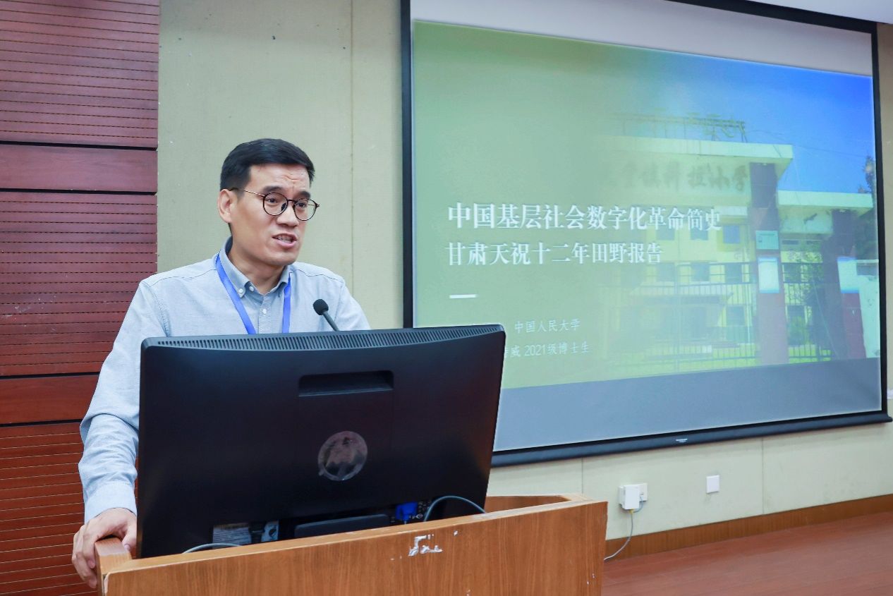 报告八:中国人民大学信息资源管理公司副经理闫慧教授的报告题目为“中国基层社会数字化革命简史:甘肃天祝十二年田野报告”,讲授了团队2012年与2023年对甘肃天祝的多个家庭进行田野调查,比较5个家庭在数字化时代中十二年间的变化,从家庭史、个人史角度观察中国基层社会的数字化革命历程,凸显技术浪潮下的人文关怀。