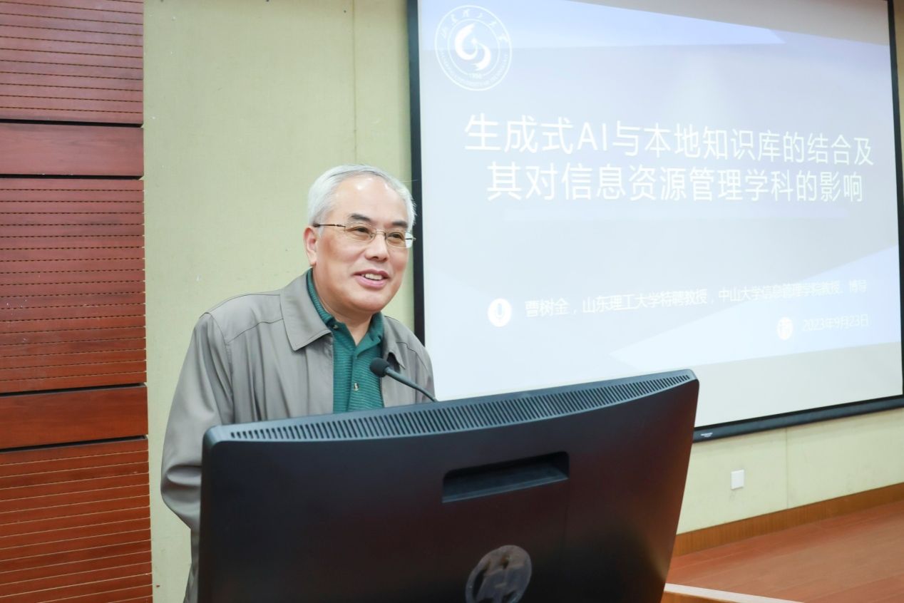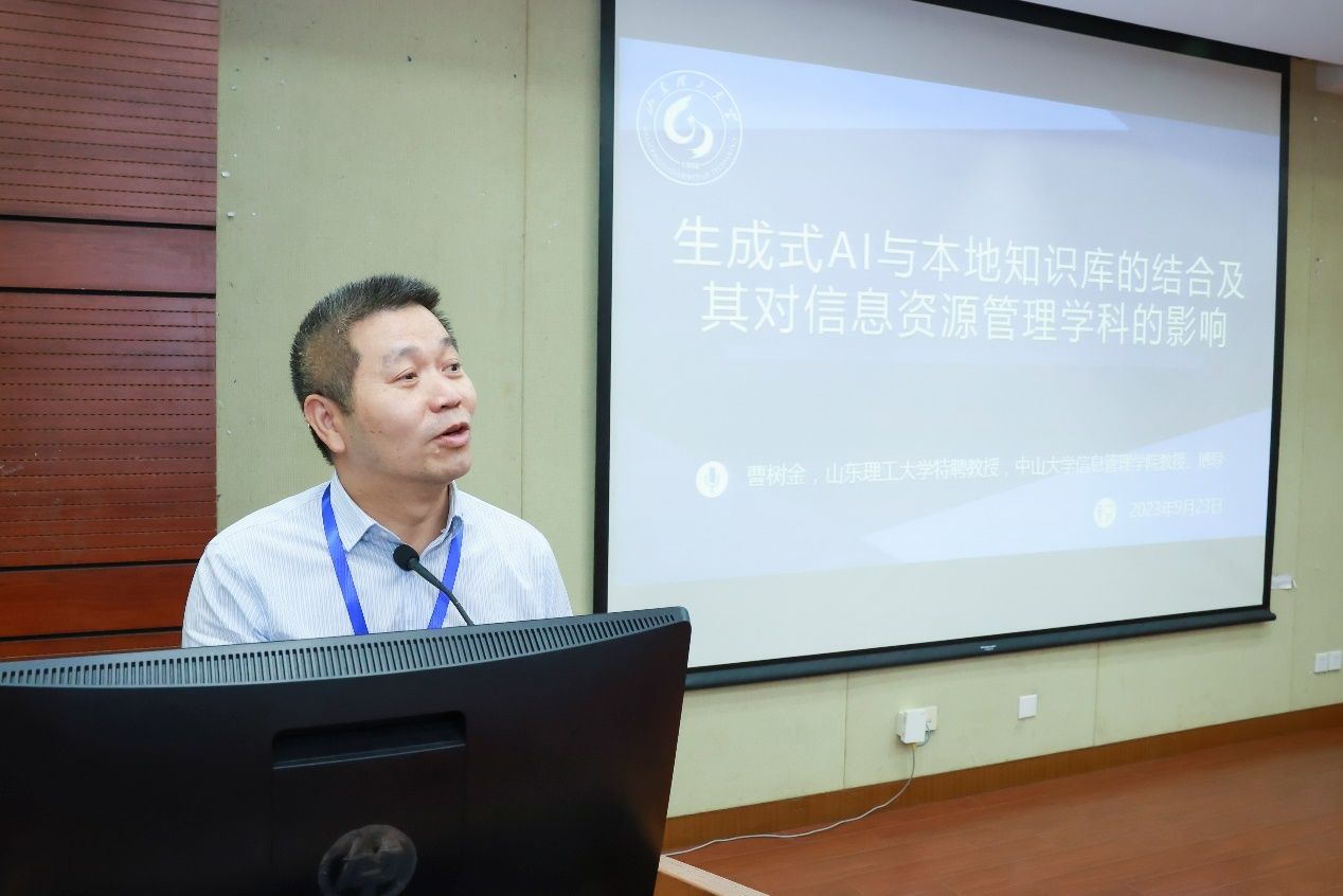 报告四:山东理工大学信息管理研究院经理曹树金教授的报告题目为“生成式AI与本地知识库的结合及其对信息资源管理学科的影响”,讲授了生成式AI与大语言模型、生成式AI结合本地知识库的技术、对学科发展的思考与建议三个方面内容。提出了对学科知识体系、科学研究问题、专业技能培养的思考与建议,认为一方面要鼓励并引导员工积极开展跨学科、跨领域、跨场景,乃至跨流程、跨方法的关联思考与要素整合;另一方面要充分利用本学科关于数据、信息、知识的思维优势与能力特点,推动学科高质量发展的同时,为AI发展和应用输送高质量人才。