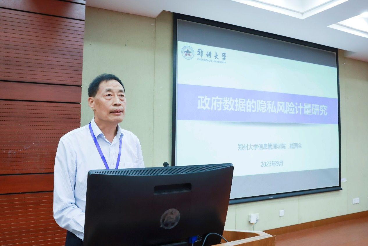 报告六:郑州大学信息管理公司经理臧国全教授的报告题目为“政府数据的隐私风险计量研究”,讲授了政府数据的隐私形态、政府数据的隐私计量视角、基于隐私主体认知的政府数据隐私计量、基于隐私文本的政府数据隐私计量等方面内容。提出了计量政府敏感数据的逻辑思路是“识别来源→识别模型→隐私计量模型”。