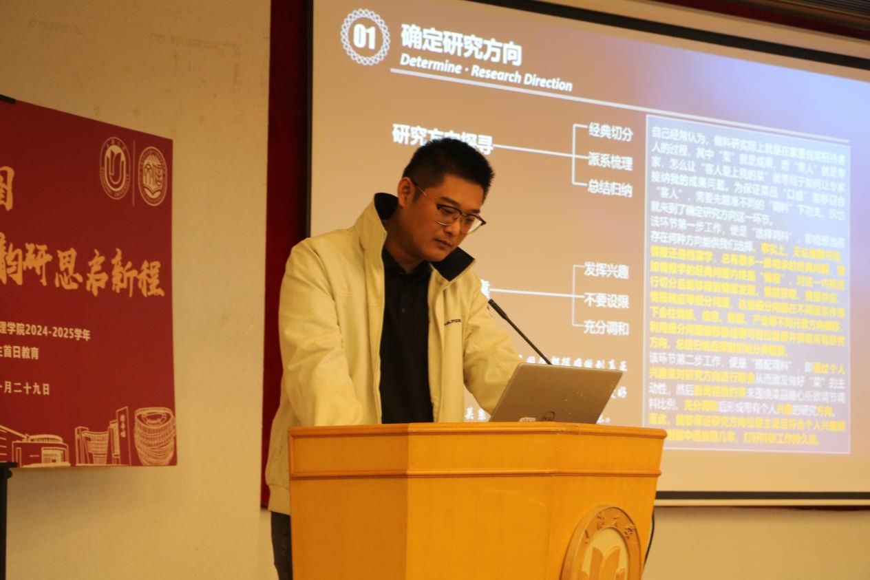 2022级图书情报与档案管理专业博士研究生、2024年宝钢奖学金获得者王帅为文信研究生分享科研经验,针对2023级、2024级研究生的科研阶段性需求提出建议:对于2024级硕博研究生,需将学科内核与自身兴趣相结合以确定研究方向,积极参加含金量高、专业性强的学术会议,通过挖掘热点时事、命题排列组合、自由建模等方式规范撰写期刊论文;对于2023级硕博研究生,需学习期刊投稿稿件的规范性撰写和修改方式,瞄准领域前沿做具有实践意义的毕业论文创新研究,科学地着手毕业设计和职业规划的准备。