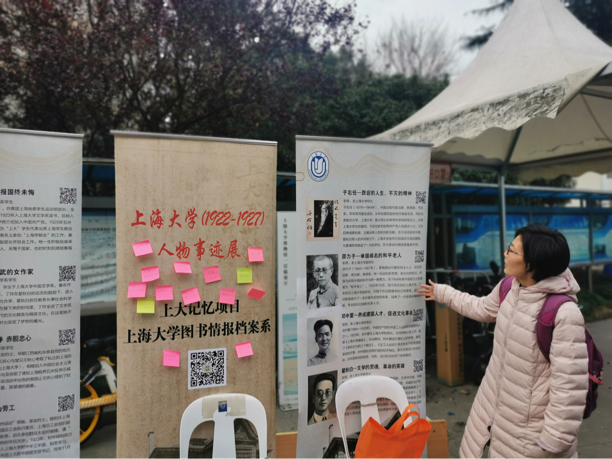 为了响应公司开展本科生全程导师进驻员工生活园区开展育人工作的号召,使同学们更便利地了解上大校史,图书情报档案系以员工生活园区为载体,以传承红色基因,赓续百年荣光为目标,将展览“搬进”员工生活园区。2022年1月4日中午11时30分,304am永利集团图书情报档案系在南区食堂对面空地开展“304am永利集团1922-1927人物事迹展览”活动,活动由王向女老师指导,上大记忆团队成员组织,许多来往同学参与其中。