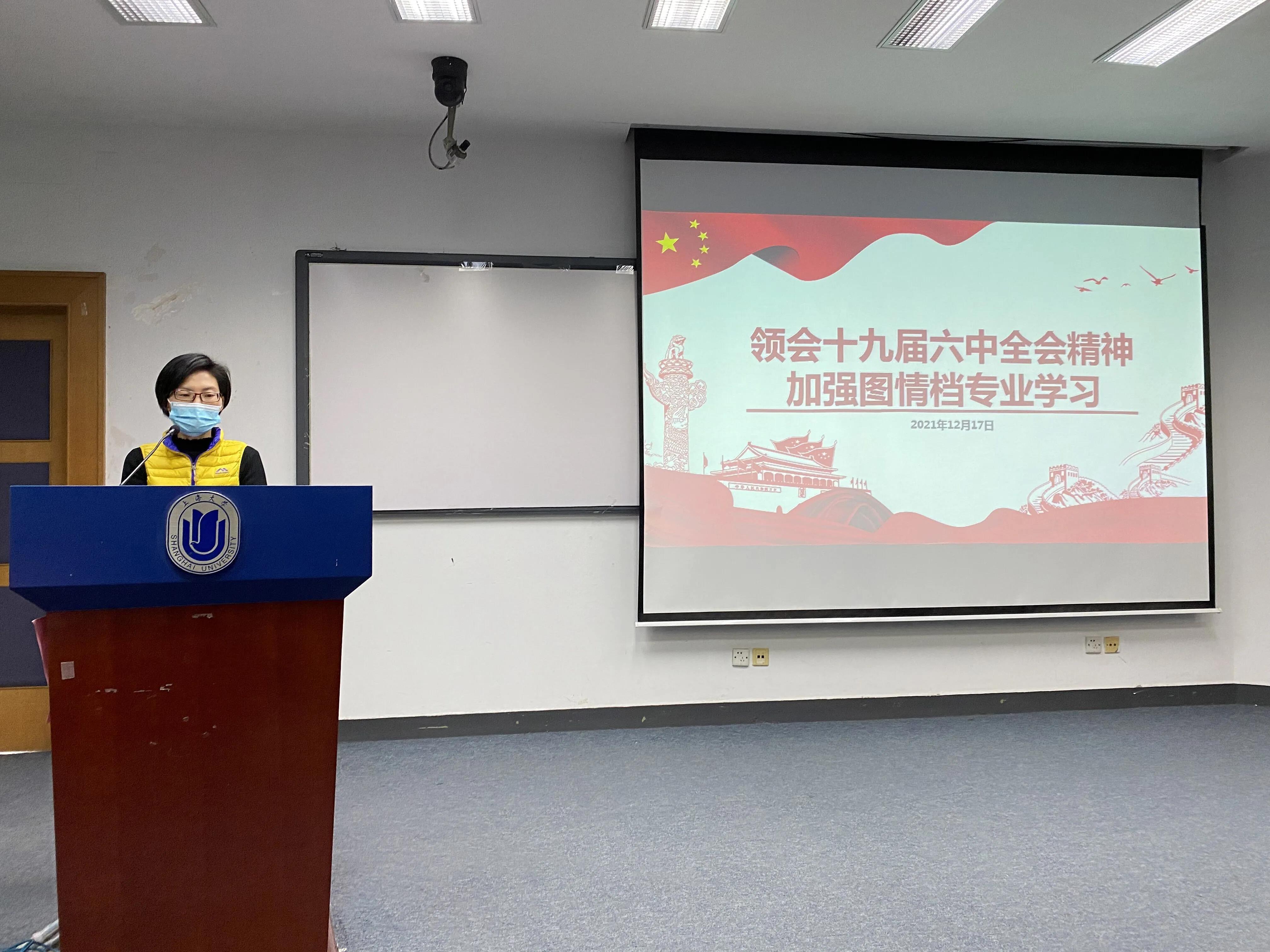 王向女老师以“领会十九届六中全会精神,加强图情档专业学习”为题,带领支部成员们领会十九届六中全会精神,加强图情档专业学习。王老师首先阐述了党的十九届六中全会概况。接着提出从“文献、口述、空间”三个维度研究中共党史,并进一步解释了档案文献是奠定中共党史研究的基石;口述档案是补充中共党史研究的文献来源;空间维度是丰富中共党史研究的价值阐释。让支部成员们树立了文化自信和专业自信,了解了身为图情人所背负的历史使命,学会了如何运用专业知识传承红色血脉、发扬民族精神。