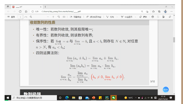 在兼职辅导员汪老师对蔡老师进行简要介绍后,活动进入第一个模块:知识点讲解。课上,蔡老师深入浅出地讲解了数列极限和定积分两个部分的基础知识,包括数列极限的定义、四则运算、函数极限的定义、性质等基本内容。在讲解过程中,蔡老师不仅详细耐心地解释各项定理、公式的原理,更是提出了“结合图像进行记忆”的独家妙招,尤其是在对数列极限各项定理的理解时,结合图像能帮助我们更形象、直观地理解定理的实质内涵。蔡老师还针对函数极限的求解问题,根据例题,针对性的提出了一些解题小妙招,包括:先化简,再代值、利用重要极限等。在课程讲授时,在场同学也纷纷记下重要知识点,以便温故知新。