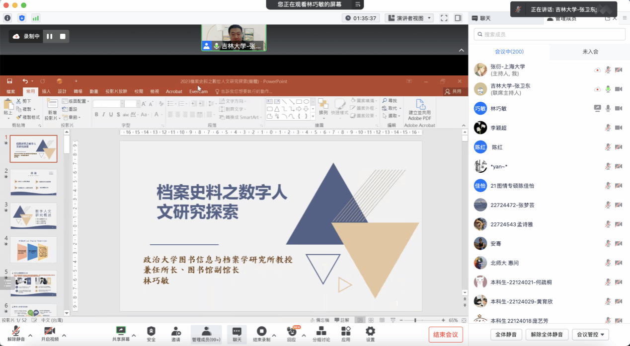 本次讲座在意犹未尽中结束,林巧敏教授带来的分享内容详实,深入浅出,理论与实际相结合,让参会人员对数字人文工具在档案史料领域的应用有了更深刻的认识。(撰稿:高臻)