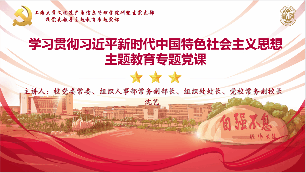沈艺部长围绕主题教育基本情况、学习贯彻党的创新理论的收获体会、改进工作的方法举措三个方面讲授专题党课。