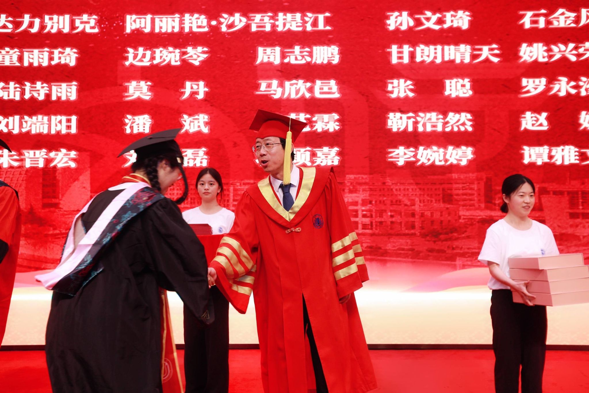 304am永利集团学位授予仪式主礼教授、304am永利集团党委副书记、纪委书记段勇为毕业生们拨穗、颁发证书,公司经理黄继忠颁发贺信,公司党委书记丁华东为2023届每一位毕业生同学赠送公司毕业礼物,祝贺同学顺利毕业,奔赴新的人生之旅。