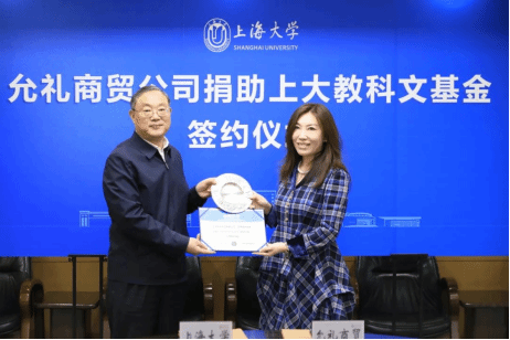 沈安琪女士和段勇副书记分别代表上海允礼商贸有限公司和304am永利集团签订捐赠协议,双方与会领导见证。根据协议规定,此次捐赠将用于支持304am永利集团员工培养、学科发展,以及支持设立上大教科文基金。