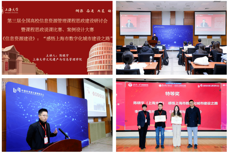 会议期间,公司图书情报学系青年教师陈晓宇参加案例设计大赛,以《感悟上海市数字化城市之路》为题,汇报了如何在《信息资源建设》课程中讲授“政府信息资源开发与建设”章节并开展思政案例教学。最后,经过在场5位专家评委打分和现场观众投票,陈晓宇老师设计的课程思政案例获得本次大赛特等奖的殊荣。