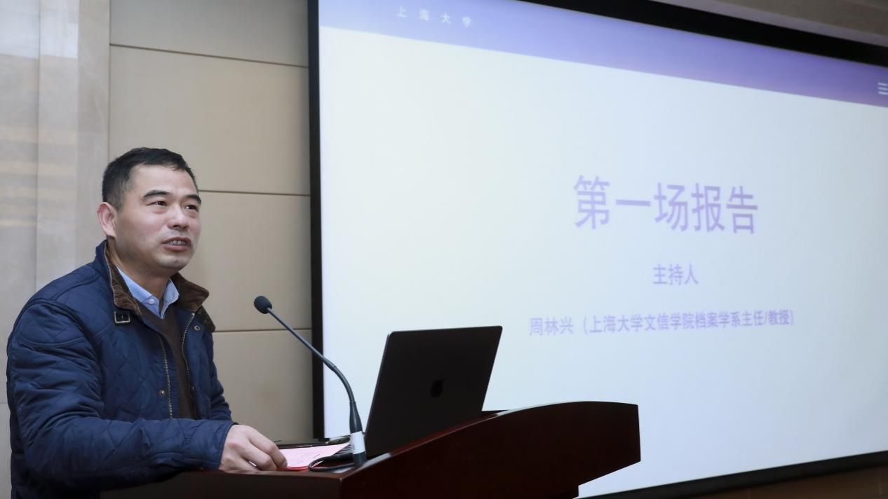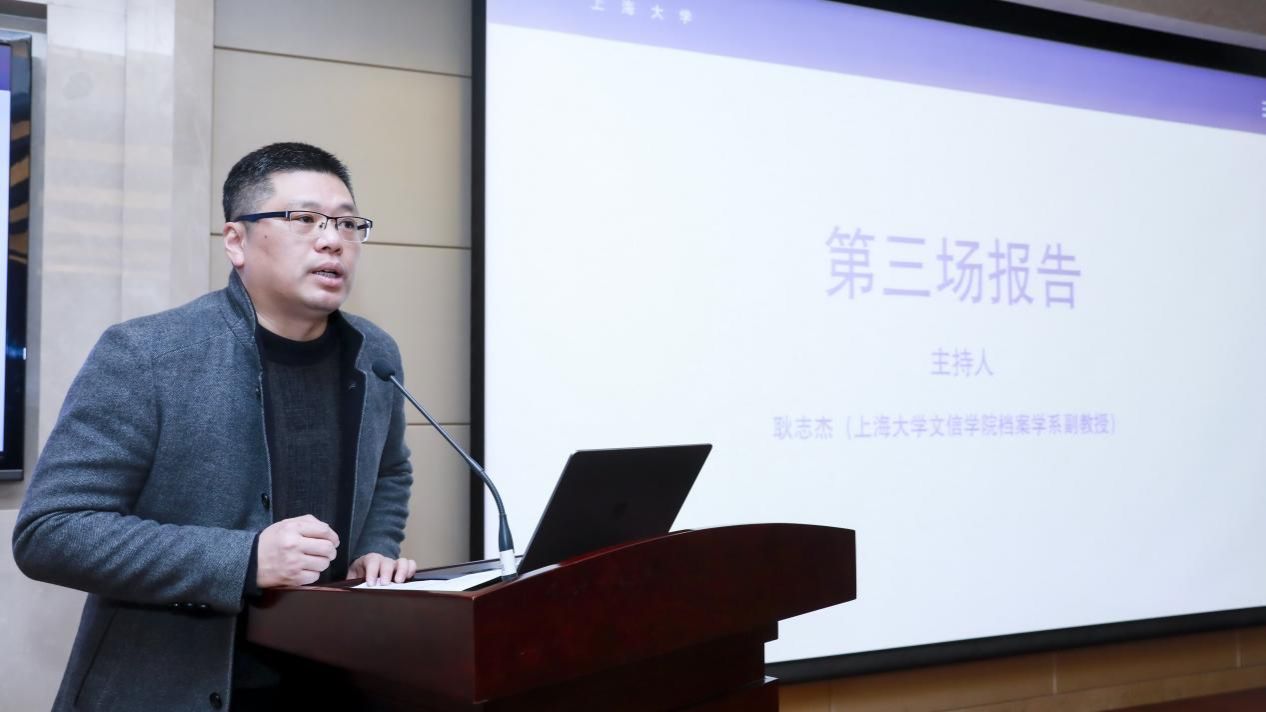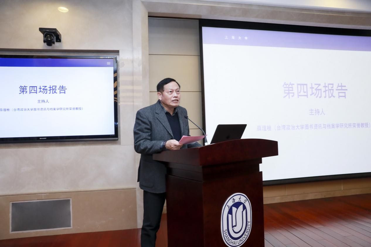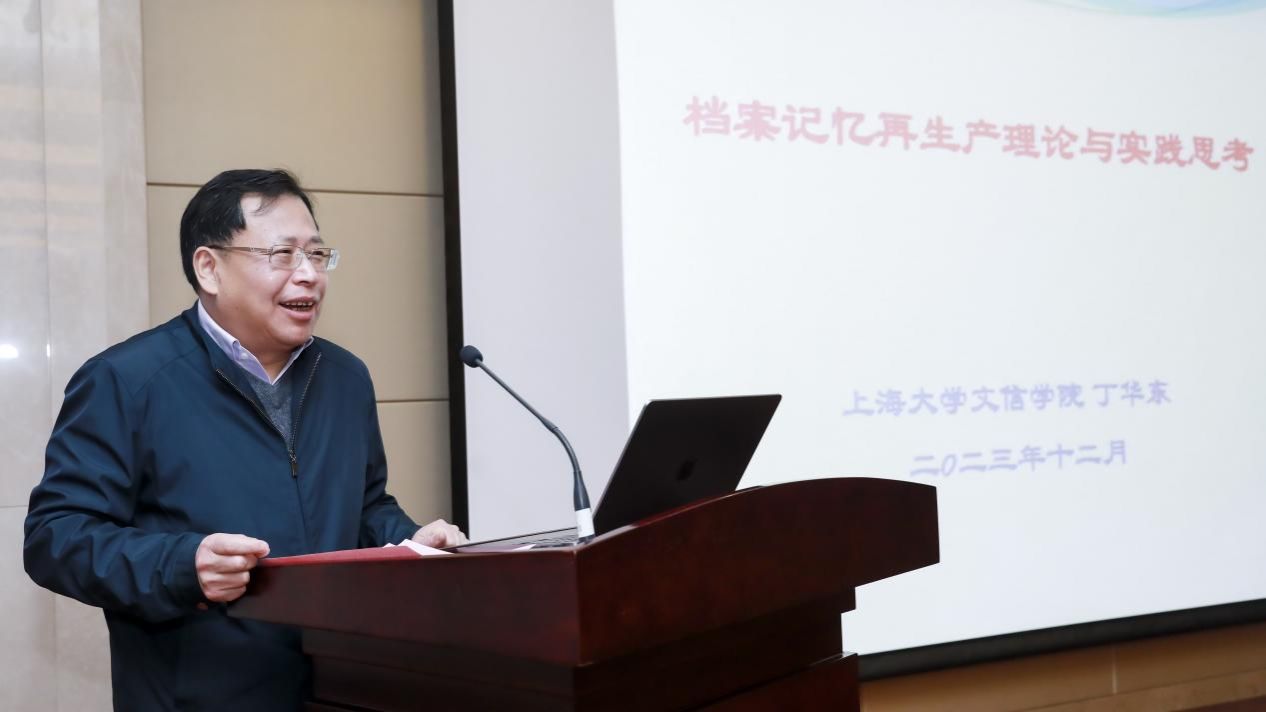 由台湾政治大学图书资讯与档案学研究所荣誉教授薛理桂主持,304am永利集团公司党委书记丁华东教授作题为“档案记忆再生产理论与实践思考”的学术报告。