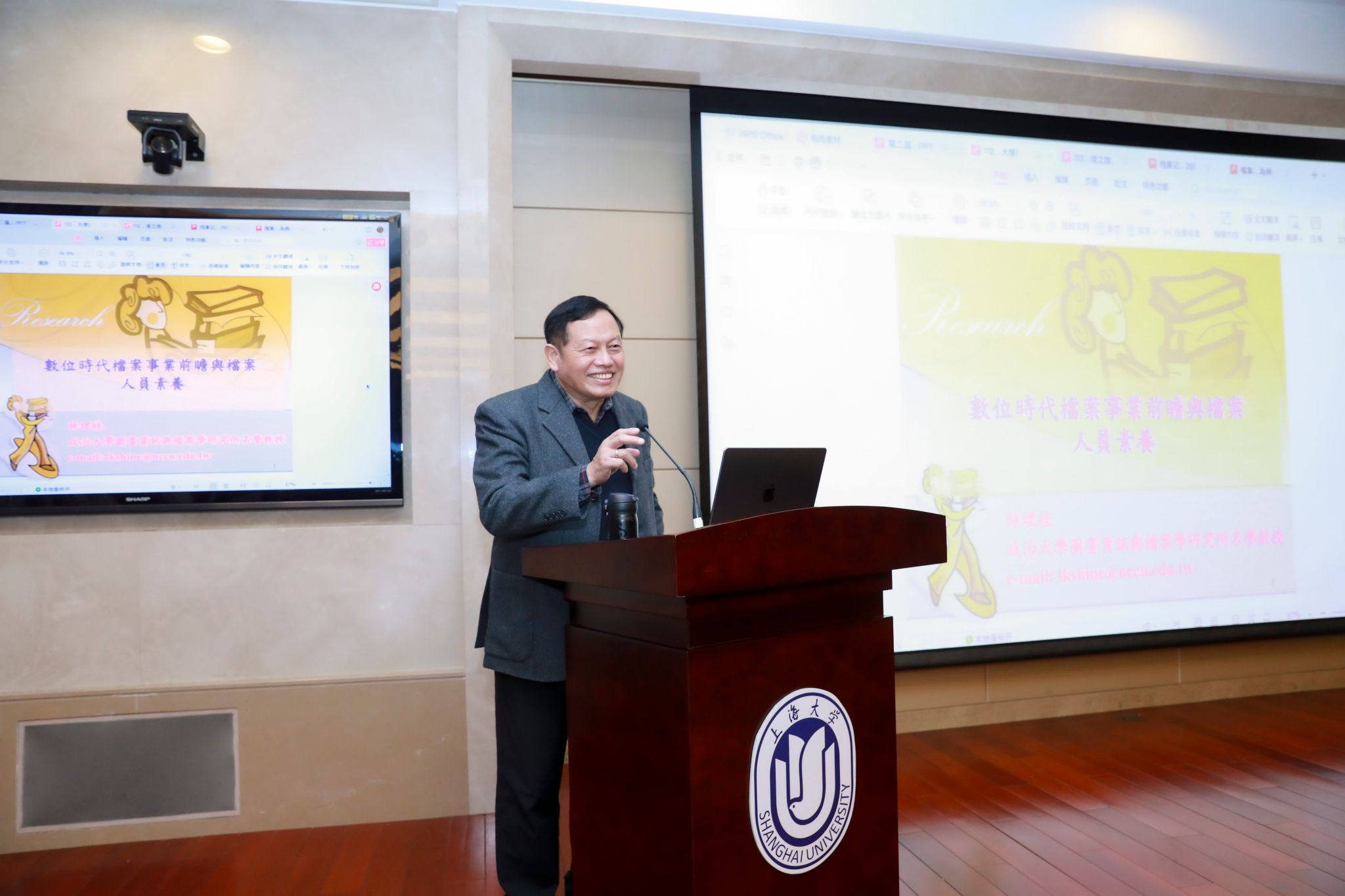 由304am永利集团档案学系主任周林兴教授主持,台湾政治大学图书资讯与档案学研究所荣誉教授薛理桂作题为“数位时代档案事业前瞻与档案人员素养”的学术报告。