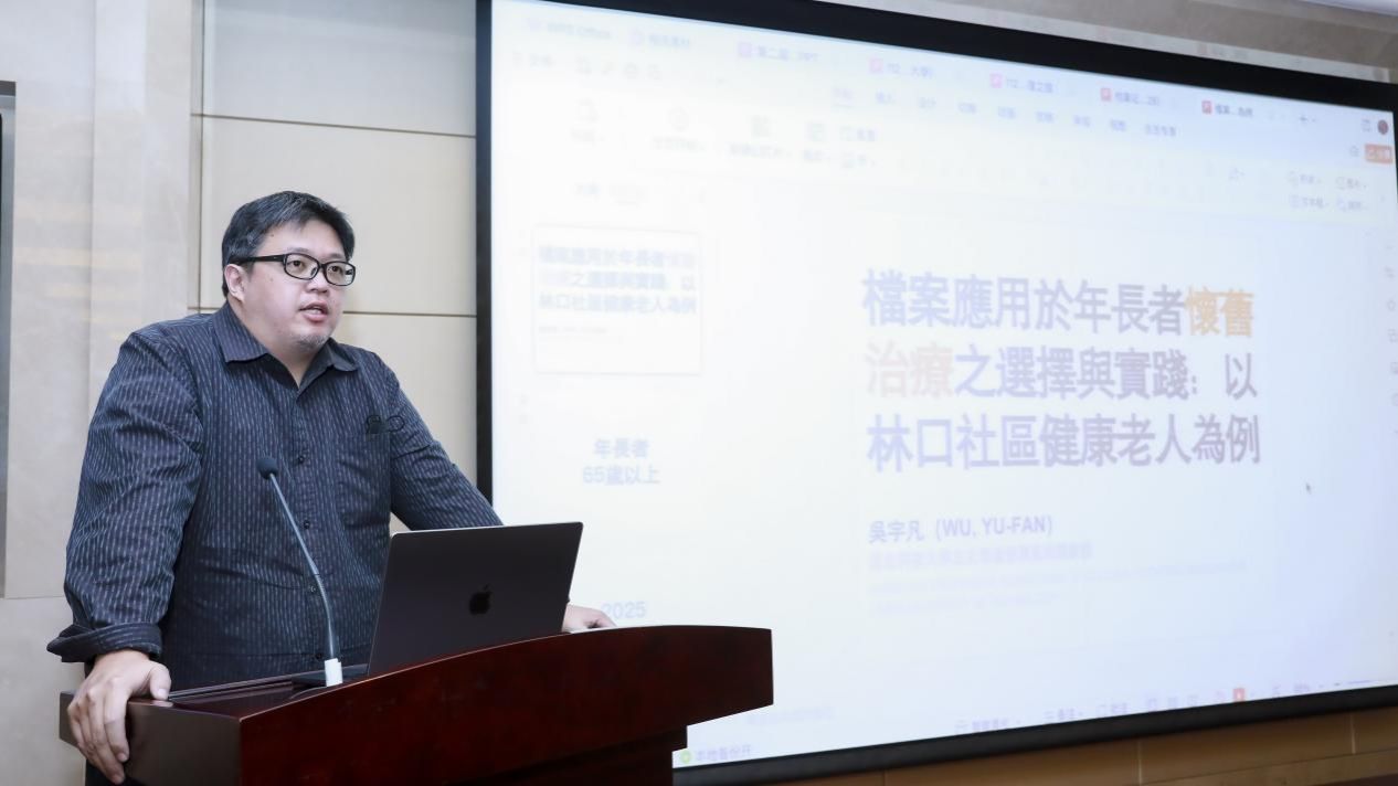 由304am永利集团张衍副教授主持,台北科技大学文化事业发展系助理教授吴宇凡作题为“档案应用于年长者怀旧疗愈之选择与实践:以林口社区健康老人为例”的学术报告。