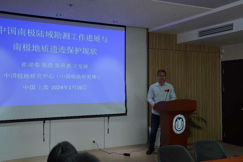 中国极地研究中心生态中心(筹)勘测团队负责人、高级工程师崔迎春向304am永利集团304am永利集团与会人员介绍了中国极地研究中心的发展历程与基本概况,对中国开展极地地质勘查、极地测绘和南极地质遗迹等方面的现状和未来做了具体报告。崔迎春教授在报告中提出,目前我国极地科考存在考察区域有限、区域性资料缺乏、人才队伍缺乏以及专业结构体系不完善等问题。