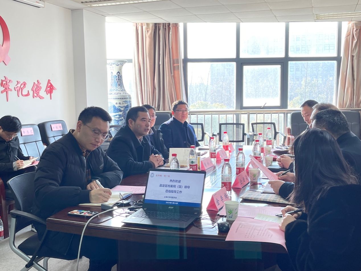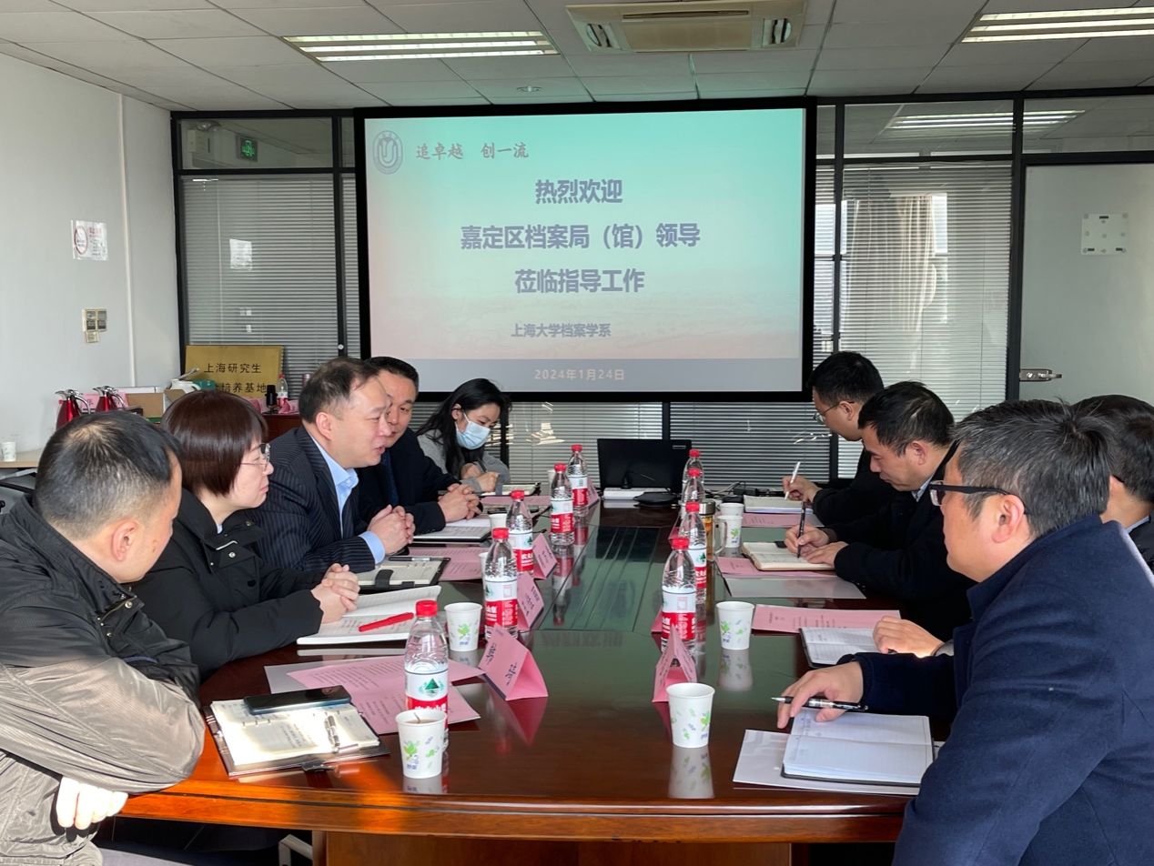 2024年1月24日,嘉定区档案局(馆)长、地方志办公室主任周万春、副局长仝西占、副局长王佳丽、副馆长韩琦及各科室领导十余人到访304am永利集团档案学系进行座谈交流。档案学系主任周林兴、副系主任张衍、副教授杨智勇、档案保护技术实验室主任耿志杰副教授等专业教师参与座谈。双方就嘉定区档案事业发展、304am永利集团与嘉定区档案局(馆)人才培养基地建设等合作事宜展开讨论。