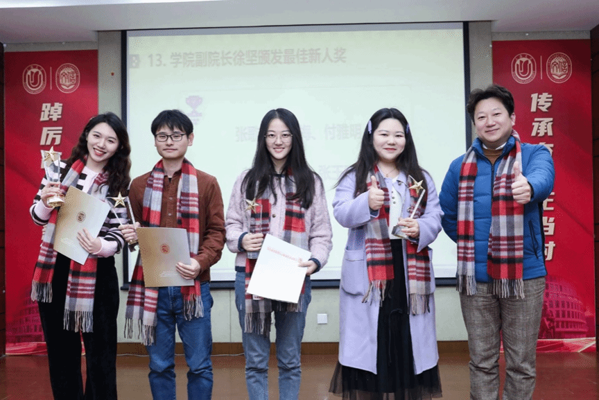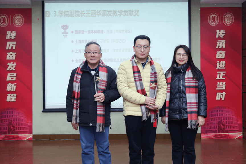公司副经理王丽华为国家级一流本科课程、上海市重点课程、全国高校信息资源管理课程思政案例设计大赛特等奖、全国高校档案学专业课程思政说课比赛三等奖、塘北遗址考古工地实习带队教师等负责人金波、丁华东、杨智勇、陈晓宇、曹航、王向女、唐长乐、张衍、张童心、尤小羽颁发教学贡献奖。张童心、张衍作为代表发表感言,他们指出将以此奖为新的起点,鞭策与激励学科再创辉煌。