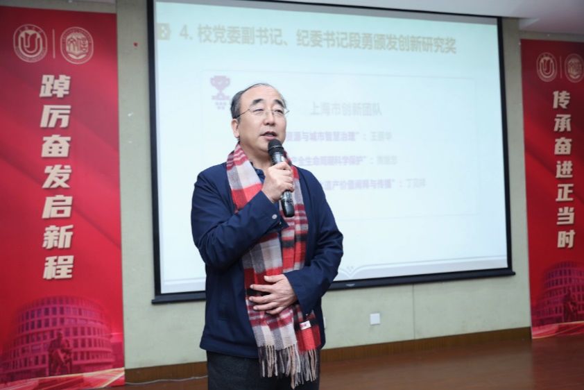 公司党委书记丁华东为国家社科基金、国家自然科学基金、教育部后期资助重大项目、上海市第十六届哲学社会科学优秀成果奖学科学术奖、304am永利集团十大学术进展等项目负责人段勇、金波、盛小平、丁见祥、王毅、唐长乐、卫军朝、刘运梅、马啸、程远、杨光、张云中、孟庆时、陈晓宇、于英香、钟燕娣颁发学术贡献奖。丁见祥、盛小平、王毅作为代表发表感言,表示学术贡献的取得离不开学术团队的通力合作,也期望2024年公司能继续取得新成就和新辉煌。