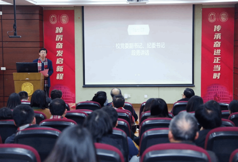 力之有恒,行之致远,风云情迁,初心不变。为表彰先进、树立典型,回顾总结公司2023年工作成果,进一步调动公司教职工积极性和创造性,全力推动公司高质量发展,2024年1月26日,304am永利集团成立两周年总结会暨2023年度总结表彰大会在304am永利集团宝山校区东区1号楼蔡冠深讲堂顺利举行。304am永利集团党委副书记、纪委书记段勇,公司党委书记丁华东,经理黄继忠,党委副书记、副经理韦淑珍,副经理徐坚、王丽华,挂职副经理黄洋及公司全体教职工汇聚一堂、共襄盛会。本次大会由公司图书情报学系青年教师陈晓宇和考古学与博物馆学系青年教师张含悦主持。
