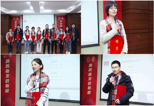 公司经理黄继忠为公司近两年获评高级职称的张云中教授、魏峭巍教授、熊静教授、李芙蓉副教授、杨谦副教授、耿志杰副教授、王思怡副教授、郑晓蕖副教授、卜凡兴副教授、孟庆时副教授、韩婧副教授、张悦副教授颁发职称聘任证书。熊静、郑晓蕖和卜凡兴作为代表发表感言,他们对过去两年来考古文博学科和图情档学科发展做简要回顾,并对2024年学科研究即将取得的新突破表示期待。
