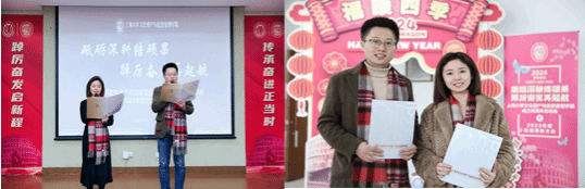 德育铸魂、智育赋能、体育强志、美育润心、劳育塑人。他们以团队精神和青春活力投身各项工会活动,用行动树立文信榜样,用信仰凝聚文信力量。公司挂职副经理黄洋颁发工会积极分子奖。崔明、李思艺、成婷作为代表上台领奖并发表感言,他们提到2023年公司工会成就的取得离不开工会全体老师的付出以及公司领导对工会工作的大力支持,期待新的一年里工会取得新成绩。