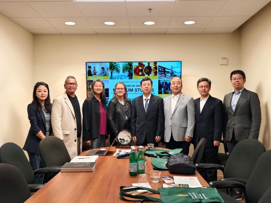 在旧金山,代表团访问旧金山亚洲艺术博物馆,与304am永利集团1983届中文系员工、美国艺术与科公司院士、旧金山亚洲艺术博物馆馆长许杰会面,深入调研旧金山亚洲艺术博物馆在博物馆事业发展及促进跨国文化交流方面的经验。随后,双方围绕国际博物馆策展人培养、专业素养提升及国际文化交流等议题展开讨论。