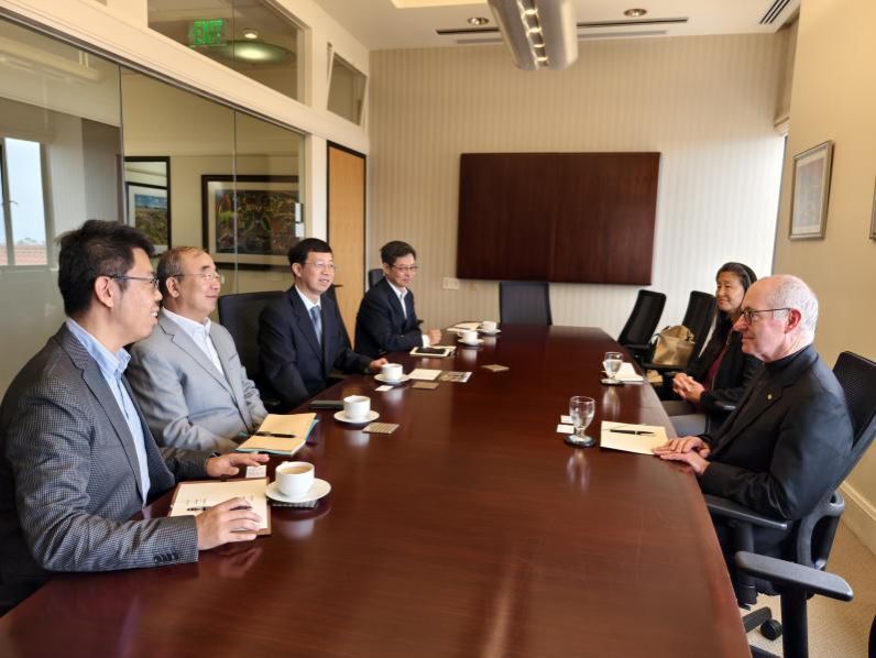 在旧金山,代表团与旧金山大学董事长Paul J.Fitzgerald,旧金山大学博物馆学科研究生项目负责人Paula Birnbaum,旧金山大学国际事务工作负责人Sharon等进行会晤,双方就共同关心的职工联合培养项目在合作内容、联合培养及未来展望方面深入探讨,初步达成未来战略合作意向。会后,代表团一行实地调研了旧金山大学人文与艺术学科相关实验室、图书馆和员工发展生活园区等。
