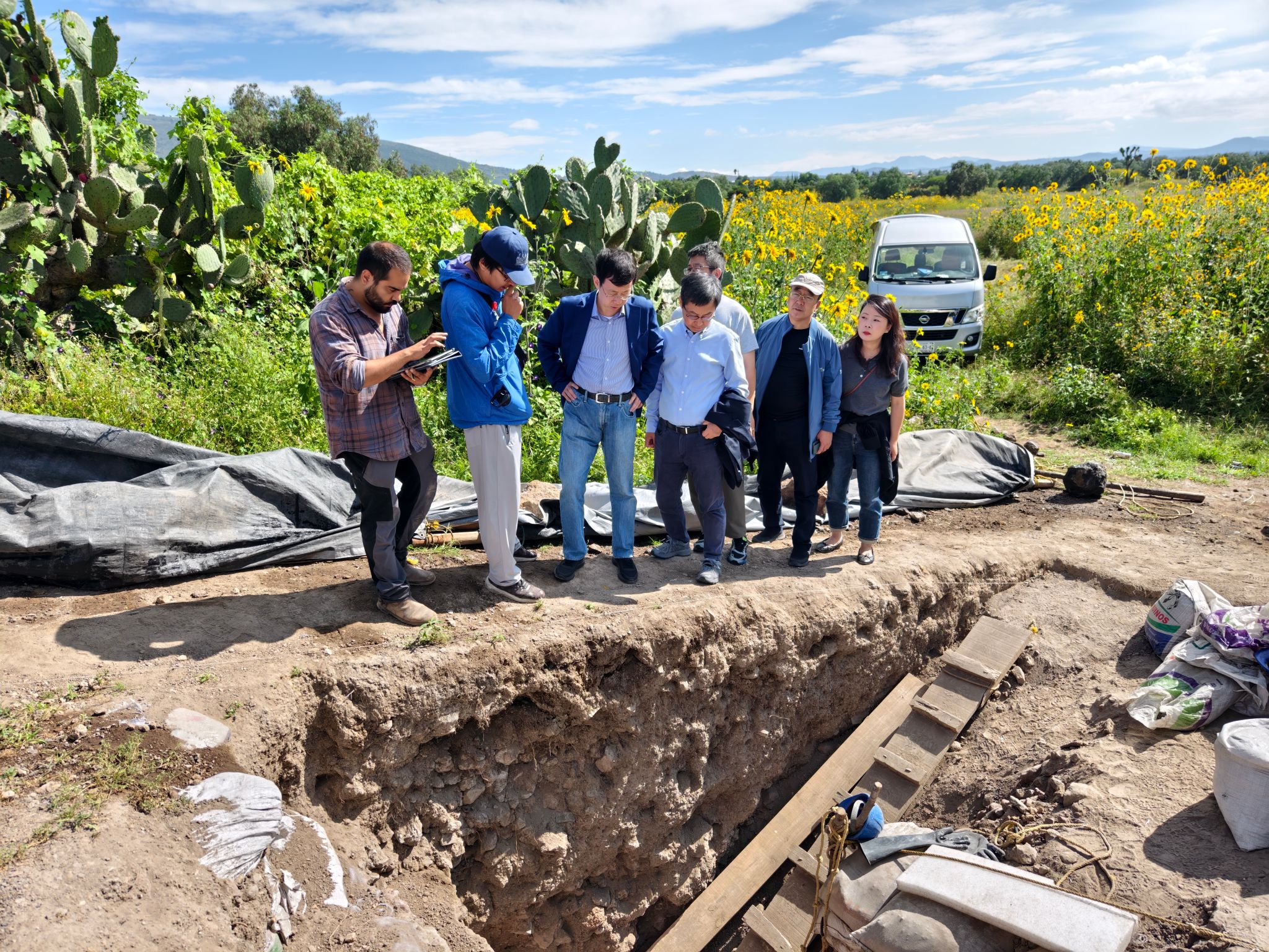 在墨西哥,代表团前往墨西哥国立人类学与历史研究所特奥特瓦坎考古工作站,围绕特奥特瓦坎考古发掘重要成果,就中外联合考古发掘研究工作及上大师生参与国际性考古项目的可行方式进行探讨交流。