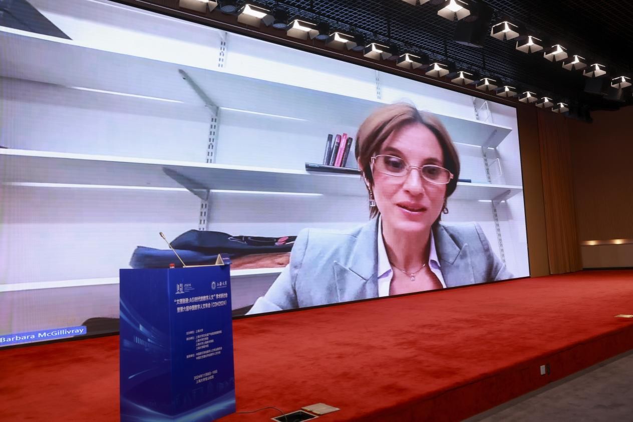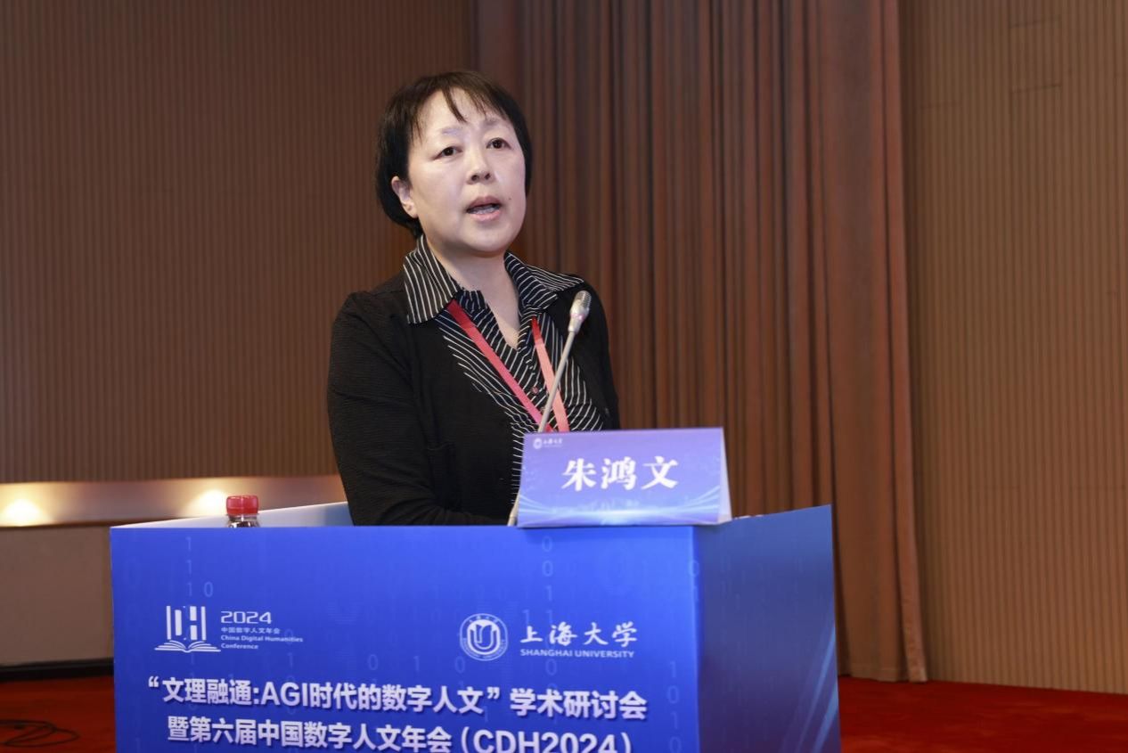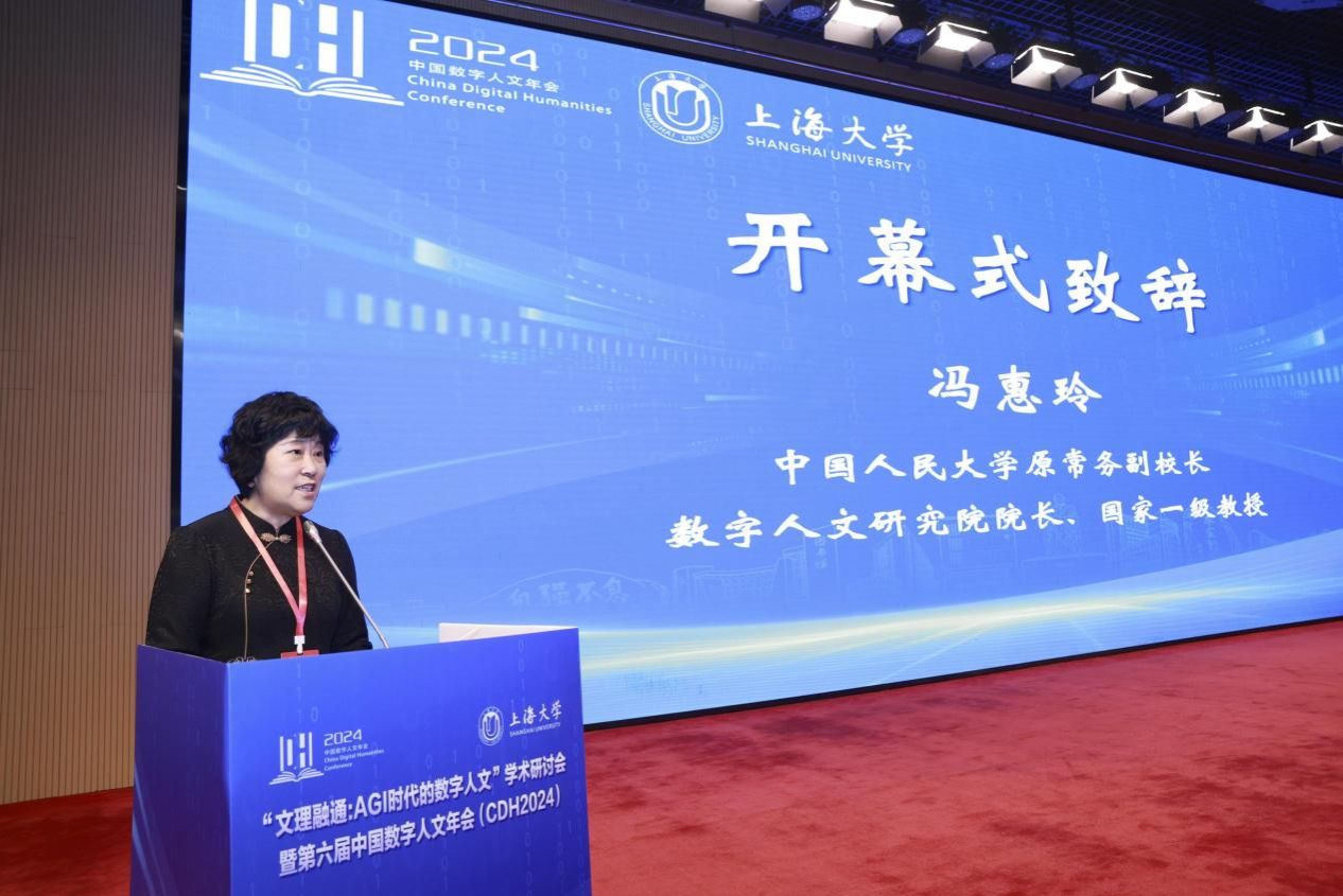冯惠玲在致辞中对AGI时代进行了畅想。她以《数字人文指南》的核心要义为导引,指出当前是探索AGI在数字人文领域角色作用的关键时刻,需着重研究其在感悟、理解和诠释人类精神文明的过程中发挥的作用,呼吁参会者深入思考如何在保持对人类价值关注的同时促进数字人文的进步,将习近平总书记提出的中华文明连续性、创造性、统一性、包容性、和平性的特征融入通用人工智能,奠定中国文化自信基石。