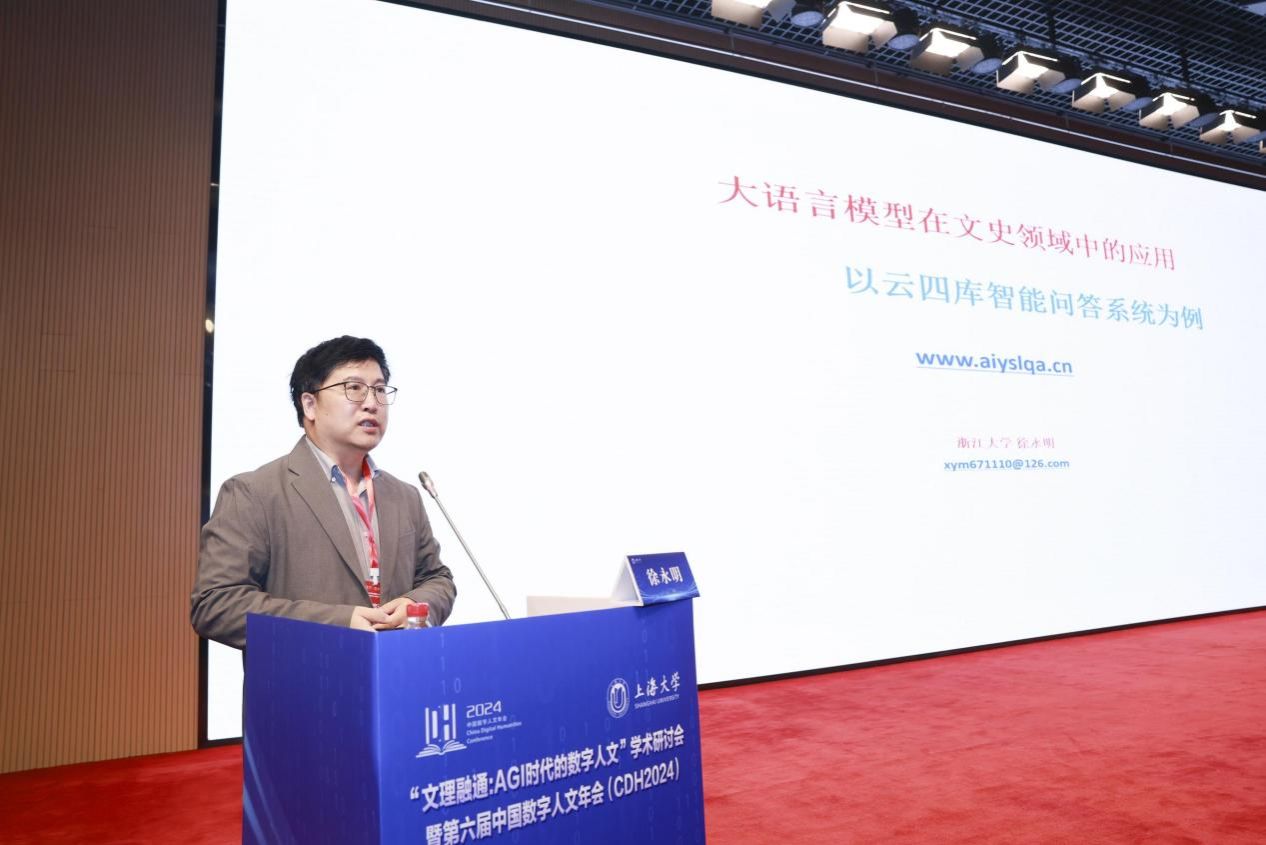 徐永明作主旨报告《大语言模型在文史领域的应用:以“云四库智能问答系统”为例》,介绍其团队在数字人文平台及数据建设方面的最新成果。徐永明团队所开发的三个平台——“学术地图发布平台”“智慧古籍平台”和“云四库智能问答系统”,分别用于发布地理信息数据、利用大数据技术整理古籍、通过大语言模型提供精准的文史问题解答,有利于提升古籍研究和教学的效率,不仅为学术研究提供了强有力的支持,也能够为公众提供丰富的历史文化资源。