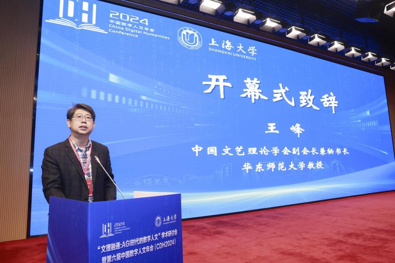 王峰在致辞中强调了数字人文作为跨学科领域研究的重要性及其在文化传承与创新中的潜力,呼吁在利用人工智能时应遵循审慎原则。他介绍,中国文艺理论学会一直致力于推动文艺理论的创新与发展,新近成立的中国文艺理论学会数字人文分会旨在支持相关研究者继续推进数字人文研究的建设与发展,拓展国内文艺理论研究界的科学性视野,共同探索文艺理论在数字时代的发展路径,为促进文艺理论的繁荣与进步贡献力量。
