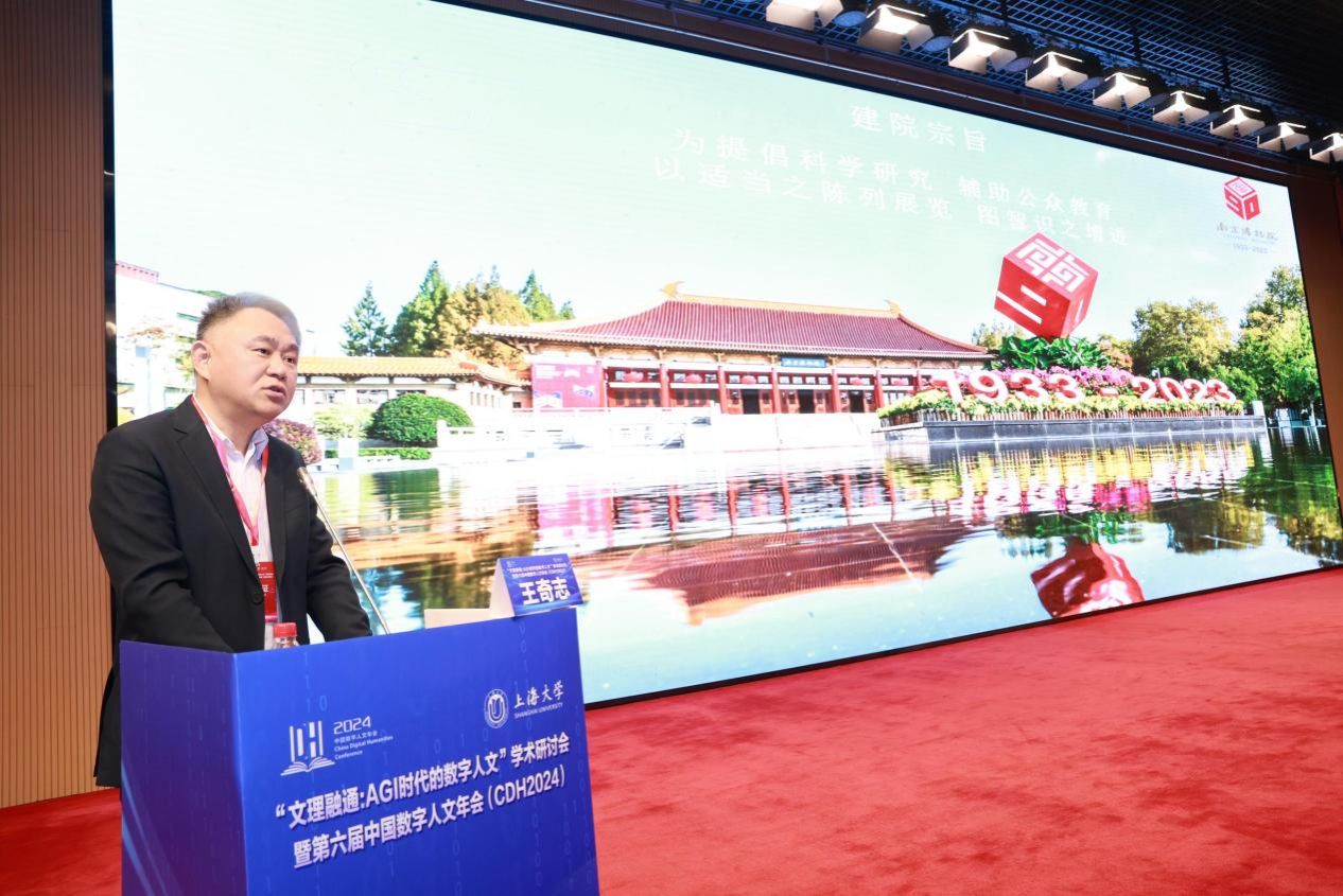段勇作主旨报告《数字人文时代GLAMS的发展路径与使命》。他指出,人文学科培养人文关怀、独立思辨能力和传承文化的价值不容忽视,图书馆、博物馆、档案馆、美术馆和科技馆(GLAMS)在数智时代呈现出融合趋势,不仅促进知识共享,还将催生新知识的发展。GLAMS通过现代信息技术赋能文化遗产资源的保护与传播,为人类社会的知识生产和积累提供了新的可能,在数智时代肩负着解答人类的终极关怀和哲学问题的重要使命。他倡议,GLAMS应积极应对数智时代的挑战,坚守人文关怀,实现科技与人文的和谐发展。