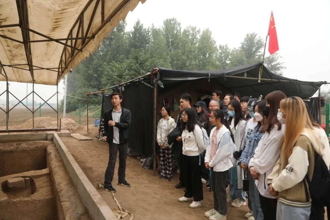 为深入了解二里头遗址的科研新动态,全体师生对二里头遗址发掘区进行实践调研。中国社会科公司考古研究所二里头工作队队长赵海涛从都邑聚落布局和重要出土遗物两个方面,为全体师生详细介绍了该遗址的相关情况。随后,师生观摩学习二里头遗址宫城区外中北部发掘地点,中国社会科公司考古研究所苏军航向全体师生介绍该地点最新的考古发现,丰富的遗迹类型和复杂的叠压打破关系使同学们对二里头遗址有了更具象深入的了解。
