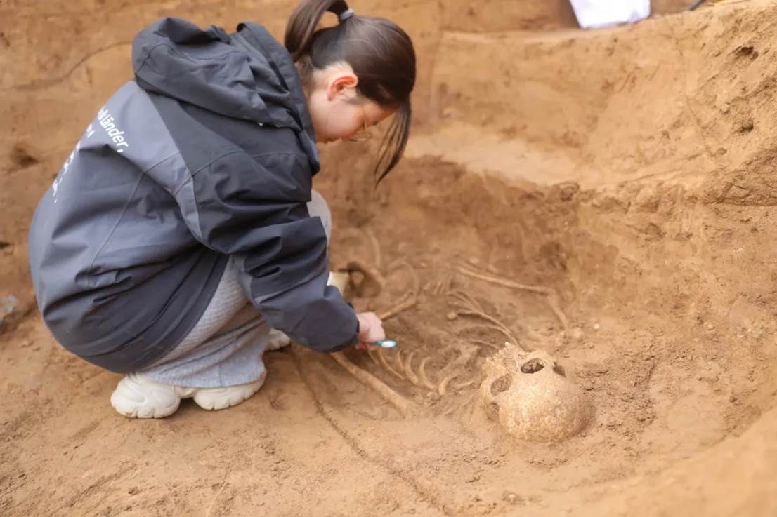 田野考古是考古学的基础,是考古学研究的出发点和立足点。田野实习不仅是一次重要的实践,也将会是一次难忘的经历。在发掘现场,同学们与黄土为伴,与大地对话,手握手铲刮面、划分地层,一步一步建立年代序列,回溯历史;用双手感受不同的土质,辨别各类遗迹,触摸各类遗物,在时代碎片中再塑历史的真实。从探方发掘到室内整理与资料分析,每一铲土、每一滴汗,都将垒砌成考古人成长路上的坚实基石。(撰稿:黄育欣)