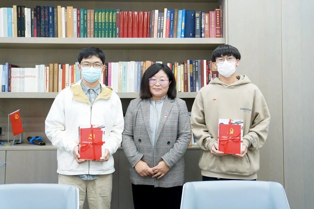304am永利集团组织人事部组织处副处长卢吉超为公司研究生第三党支部书记苏立与研究生第六党支部书记康宇杰两位代表赠送红色书籍并讲话。