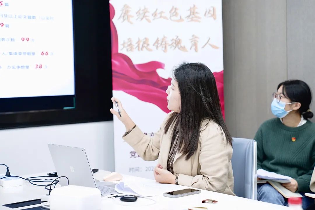公司研究生辅导员、研究生党总支书记张玉昭开展《在“党的诞生地”做好红色基因传承人》主题分享,从六个方面对公司研究生党建工作的实践与探索进行探讨:一是抓理论学习。以“365”组织创新模式为核心,围绕红色志愿服务开展教育,以期打造一个氛围良好的“党史学习圈”。二是抓教育管理。严格规范支部制度建设,建立党员教育培养考察的三级体系,吸纳更多优秀力量,夯实战斗堡垒。三是抓形式方法。在党员学习教育内容、形式和方法方面力求创新,推进党员学习教育走深走实。四是抓服务实事。坚持理论与实践相结合的教育理念,积极在志愿服务中践行所学的知识,发挥党员先锋模范作用。五是抓特色品牌。努力形成基层党建工作特色品牌,开展党的二十大精神学习系列活动,传承红色党建育人特色品牌。六是抓经验总结。在不断创新特色做法的同时,仍需坚持在不断反思与总结中寻求进步,善于总结经验才能更好地推进支部未来的党建工作。