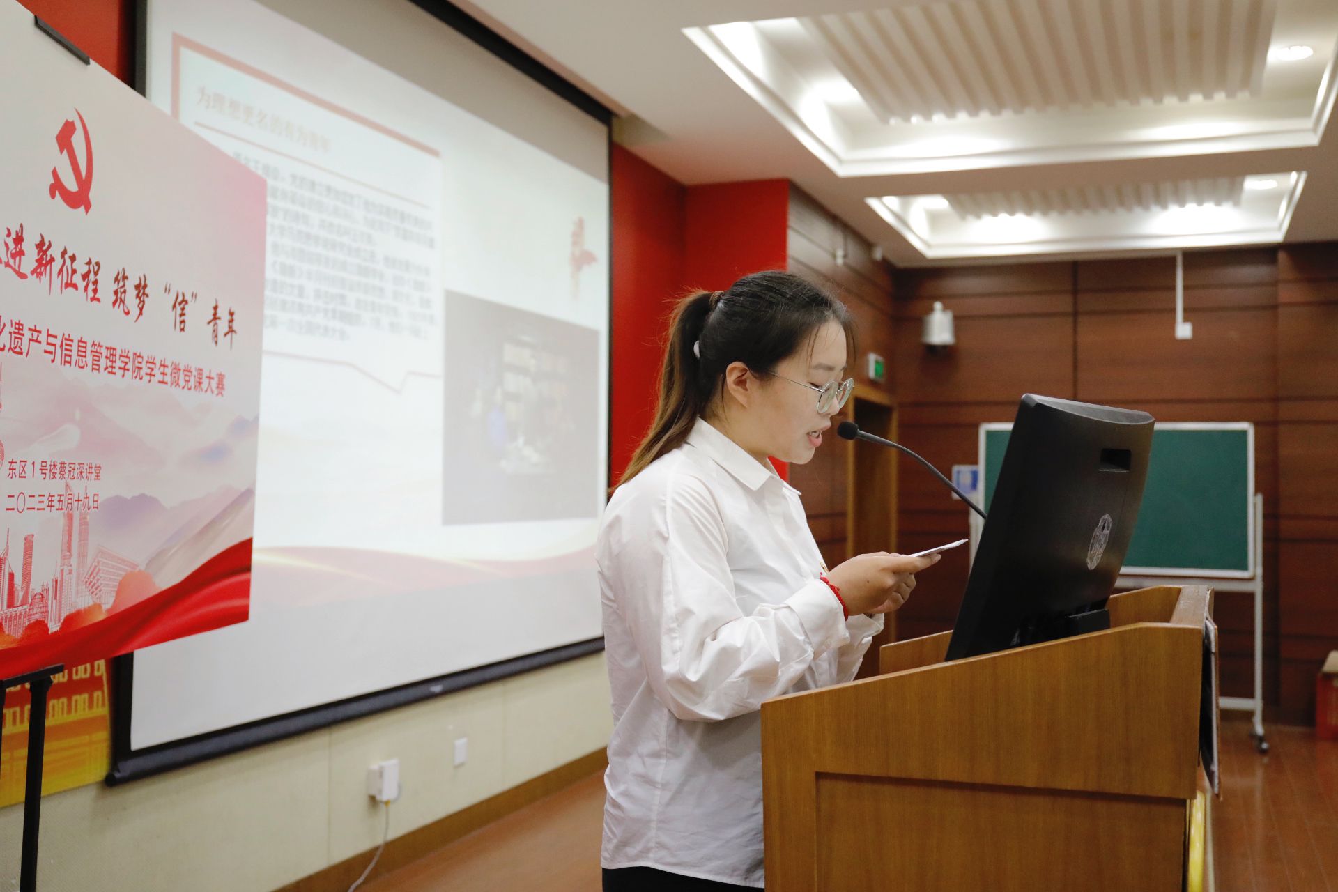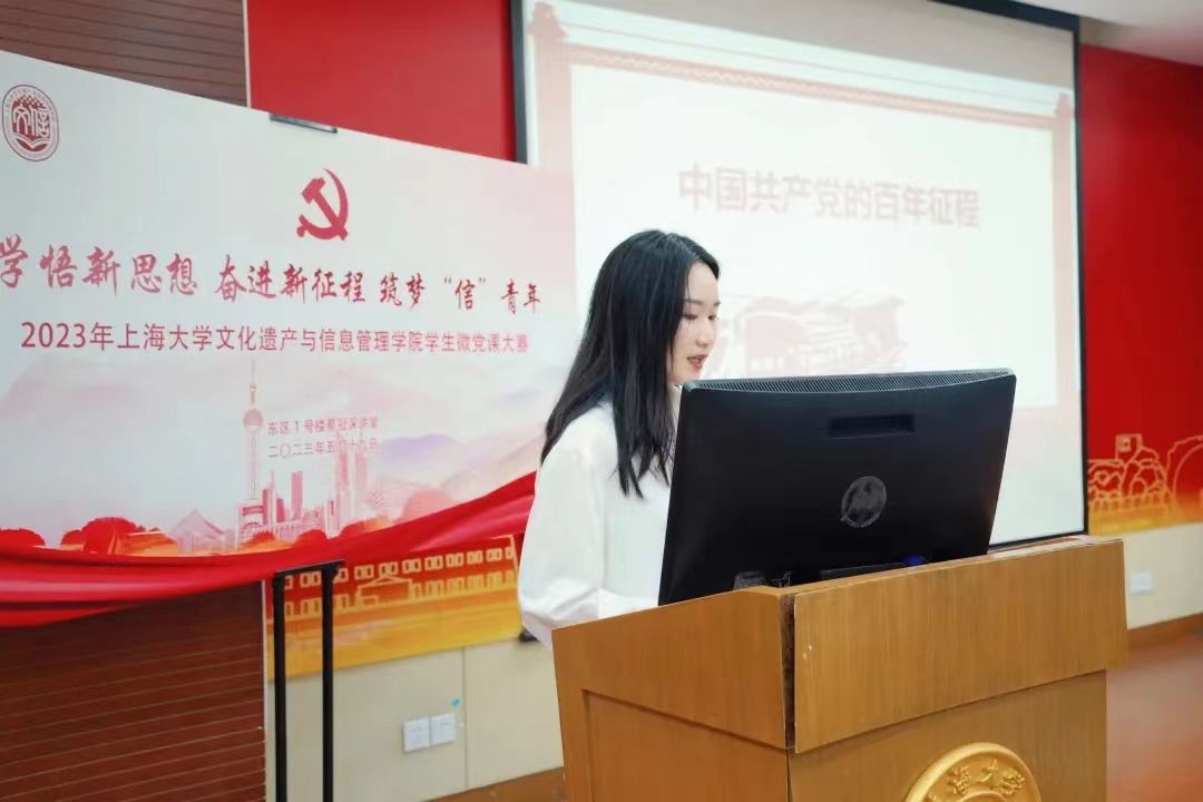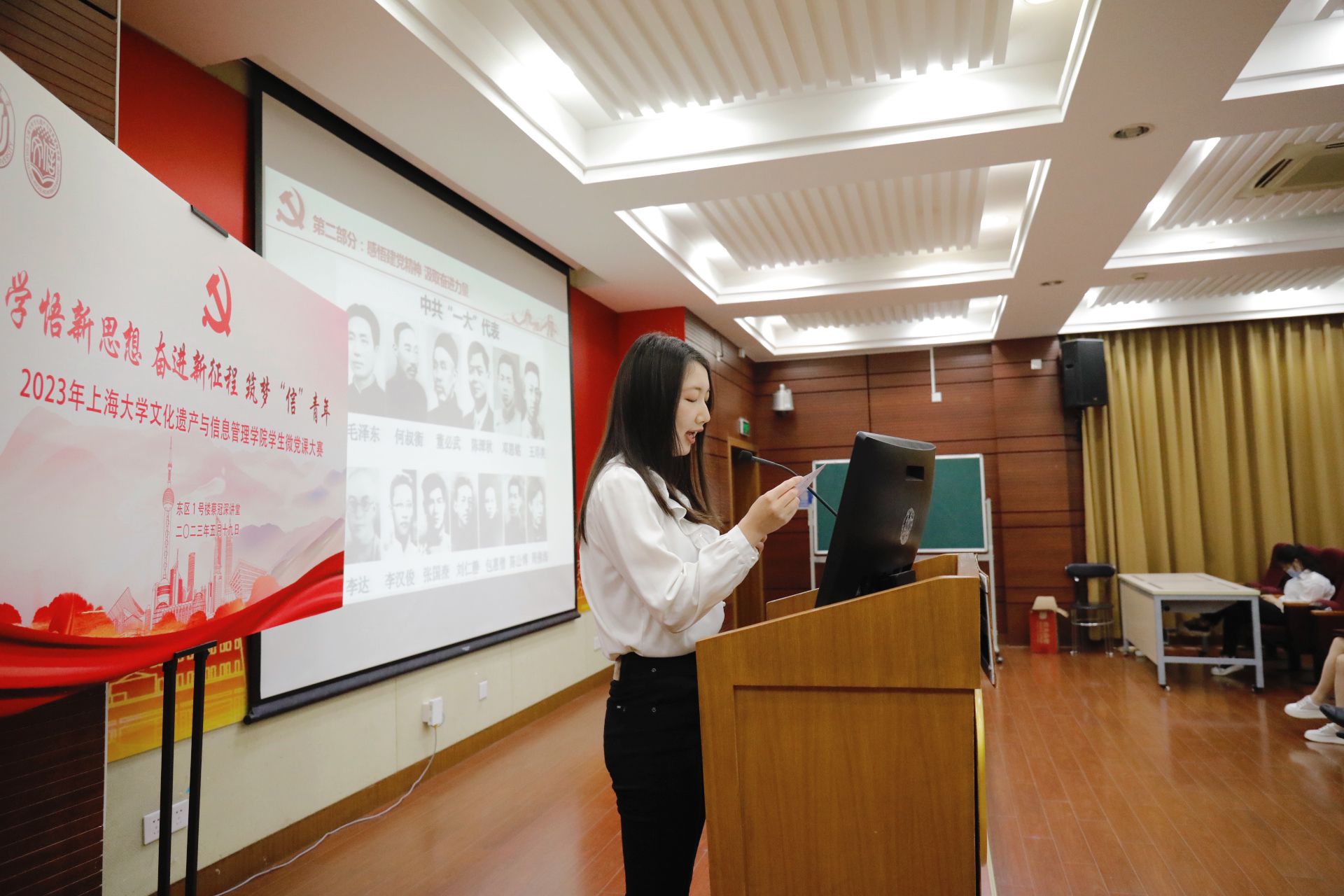 2022级档案学硕士研究生陈佳雨通过“重温历史光辉”“感悟建党精神”“凝心聚力谱新篇”三个主题回溯了中国共产党的曲折发展历程。