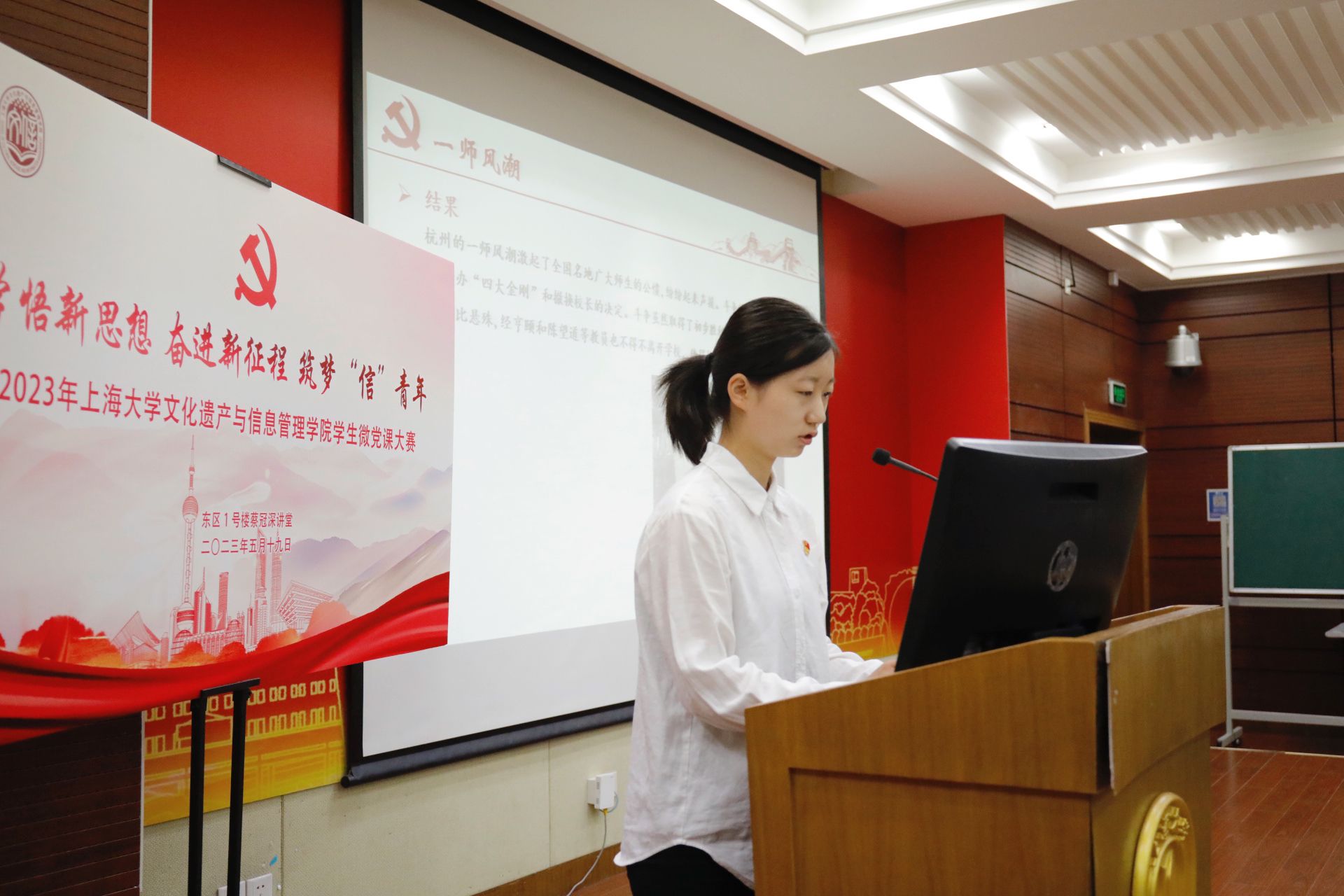 2021级档案学硕士研究生丁玉莹立足时代背景,分享了《共产党宣言》中译本第一人——陈望道一生鞠躬尽瘁,为共产主义事业奋斗终身的革命故事。