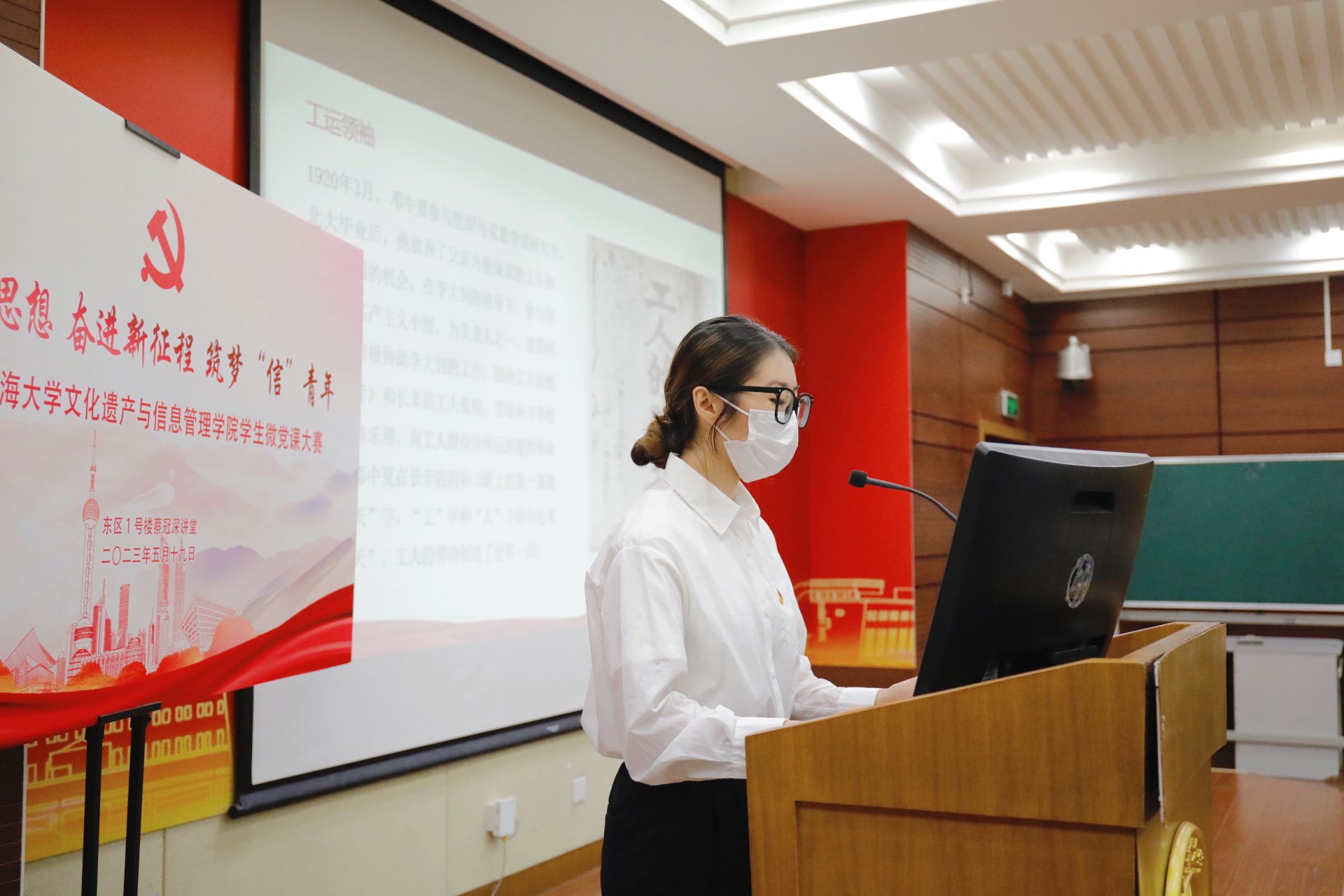 2022级情报学硕士研究生何怡美从王尽美同志一张 “来之不易”的照片出发,展开讲解了王尽美同志带领秦皇岛的工人展开工人罢工运动的故事。