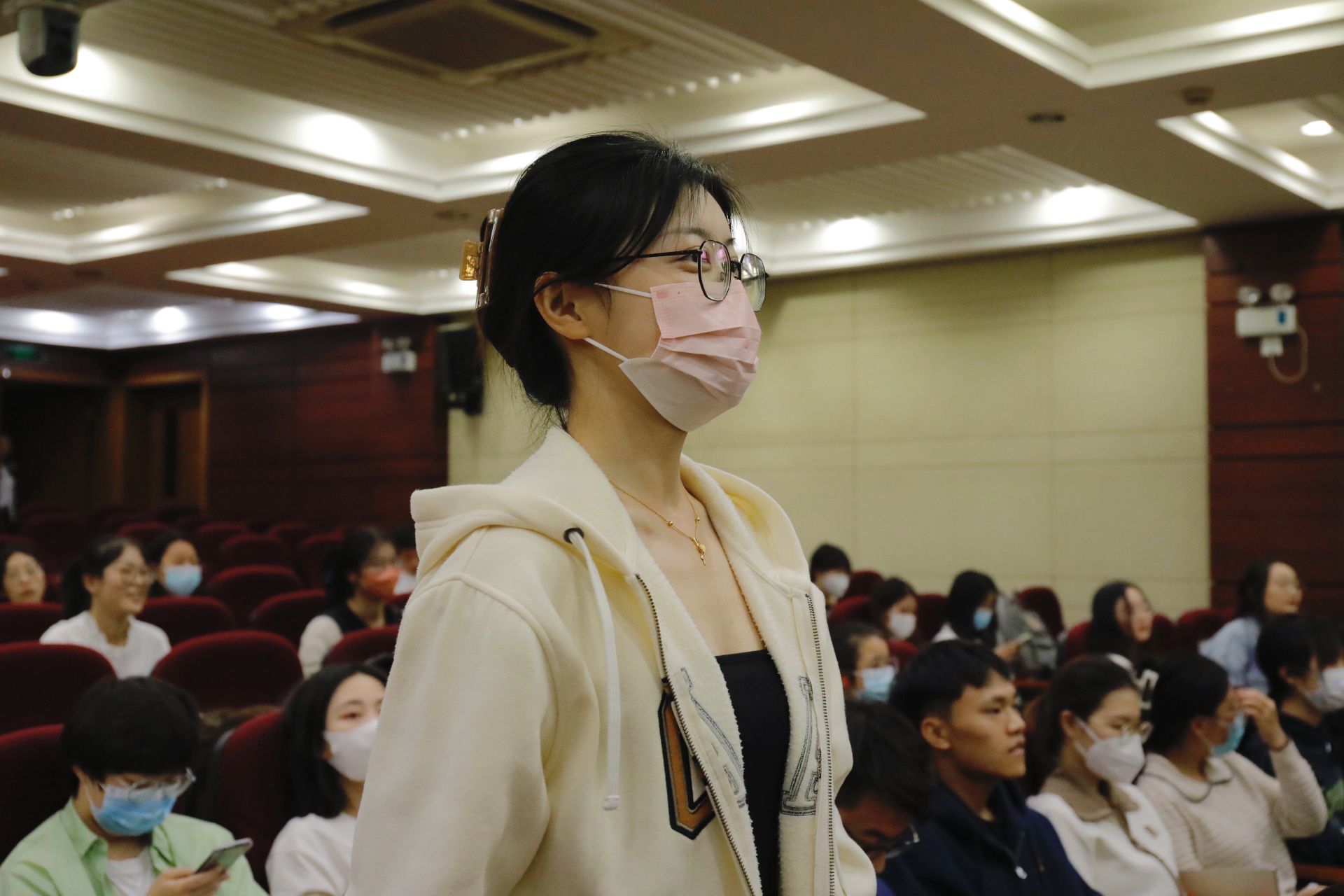 2022级档案学硕士研究生黄星围绕党的二十大报告介绍其背景及结构、重点内容、五个重大判断,结合自身党务工作者的经历,探讨党的二十大报告对员工党员的重要意义。