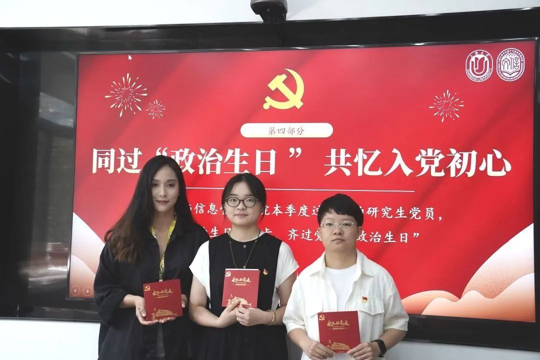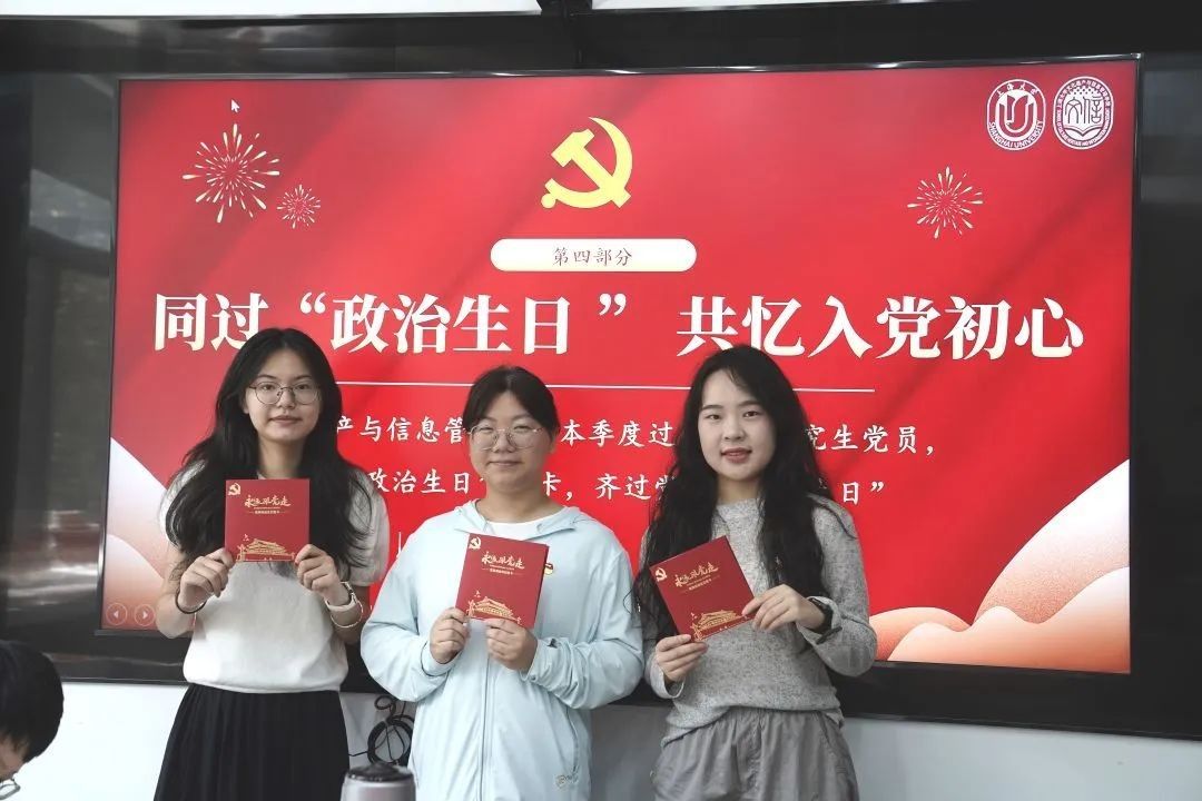 本次活动中延续了以往特别设置的温馨而庄重的环节:304am永利集团本季度过生日的研究生党员集体吃“生日蛋糕”,领取“政治生日”贺卡,齐过党员“政治生日”。党员学子们齐聚一堂,共同庆祝这一特殊时刻。每位党员都深切感受到了党组织的温暖与力量,进一步坚定了他们不忘初心、牢记使命的信念。誓以坚定的信仰守护初心,用不懈的奋斗践行使命,将青春的热情和汗水毫无保留地奉献给伟大的祖国。红色初心在这一刻跃动得更加炽热,与时代的脉搏同频共振,奏响了一曲更加激昂、更加青春的乐章。