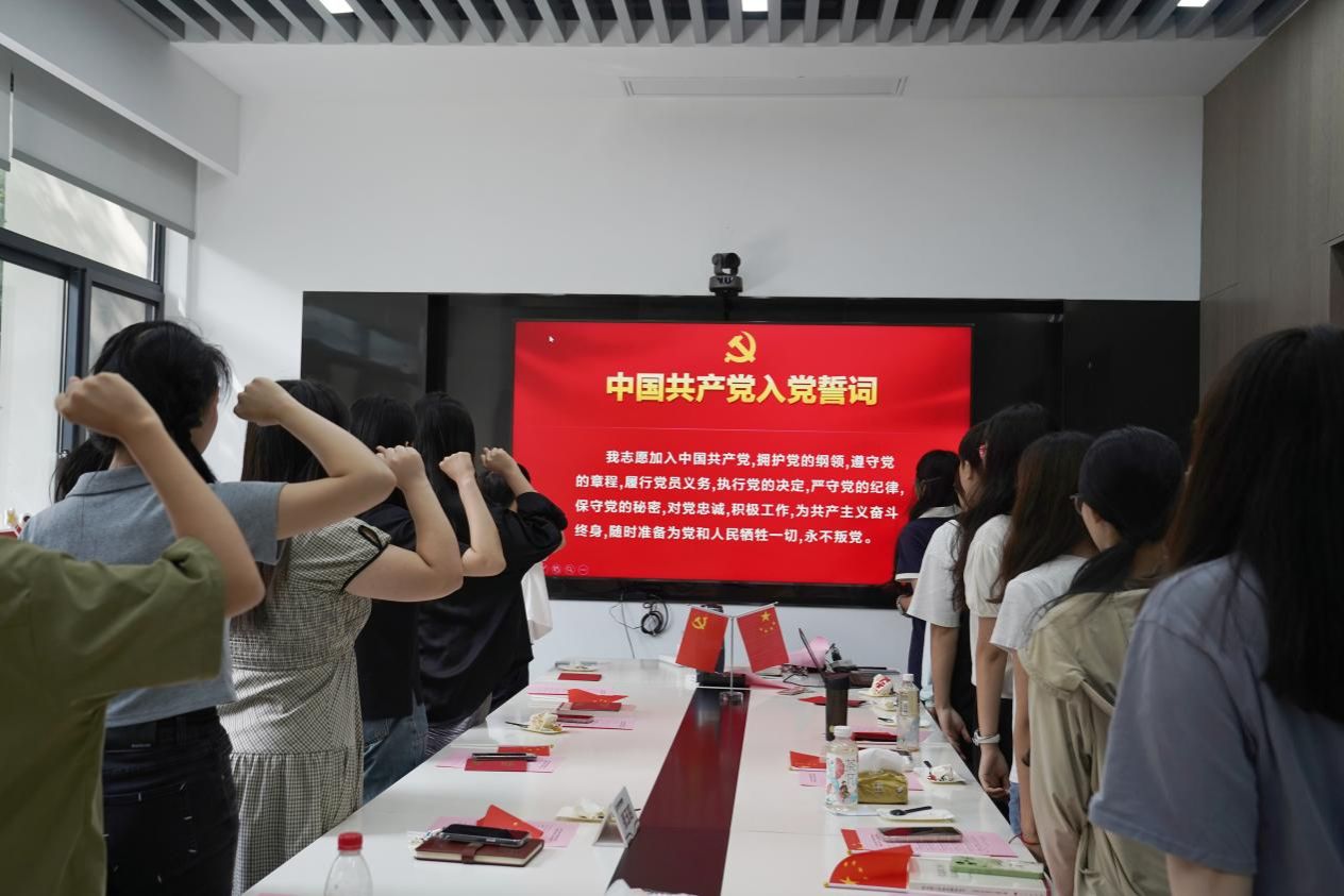 公司党员重温入党誓词。面向鲜艳的中国共产党党旗,公司研究生党员庄重地举起右手,共同回顾党的光辉历程,再次宣读入党誓词,誓言声坚定而响亮,响彻整个会场。从革命先驱到新时代青年党员,入党誓词见证了百年的传承,它是我们党的本质、目标与理想的集中体现,更是共产党人初心和使命的生动写照。一声声坚定的誓言回荡在会场中,不断坚定着文信研究生党员的初心和使命。
