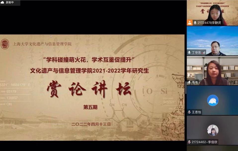 分享结束后由韦淑珍老师进行活动总结。韦老师希望大家在特殊时期做好个人防护,积极配合公司的防疫工作,增强身心“免疫力”;其次,要借助赏论讲坛的平台聚焦学术,提升科研能力;最后,要关注学科融合,注重跨学科研究,同学们可以在赏论讲坛中聆听与学习到文博、考古、图情档等丰富多样的专业知识,通过赏论讲坛这一交叉平台拓宽自身研究视野,激发研究兴趣,深化对问题的思考。